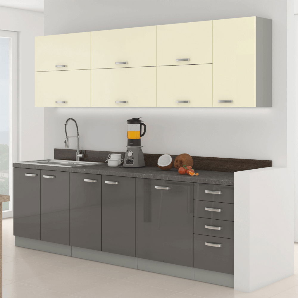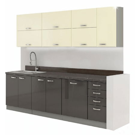 Kuhinja Primula 260 cm (siva + sjaj visoki sivi/krem)