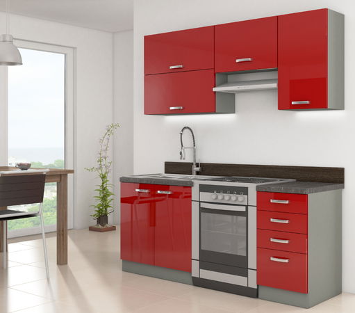 Kuhinja Roslyn 180 cm (siva + crvena)