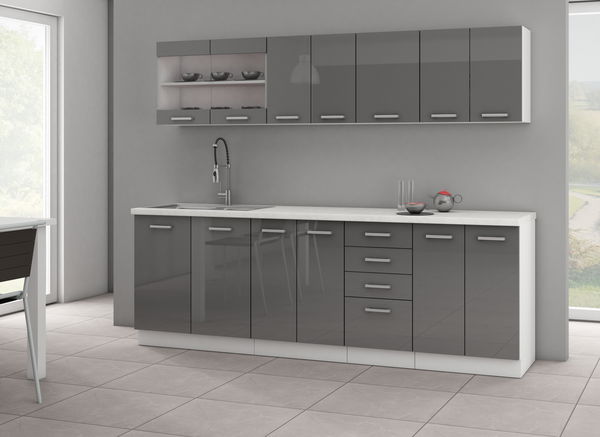 - Kuhinja Saria 240 cm (bijela + sivi sjaj)