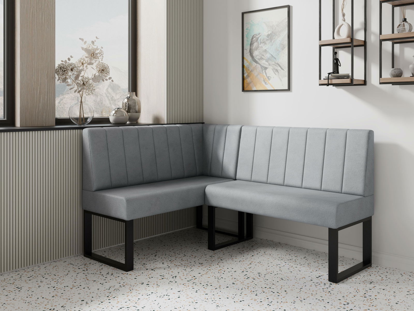 Klupa i kutni odjeljci imaju tvornički ugrađene rupe za montažu. Kupac jednostavno izreže tkaninu (npr. škarama) i spoji kut pomoću 2 vijka.