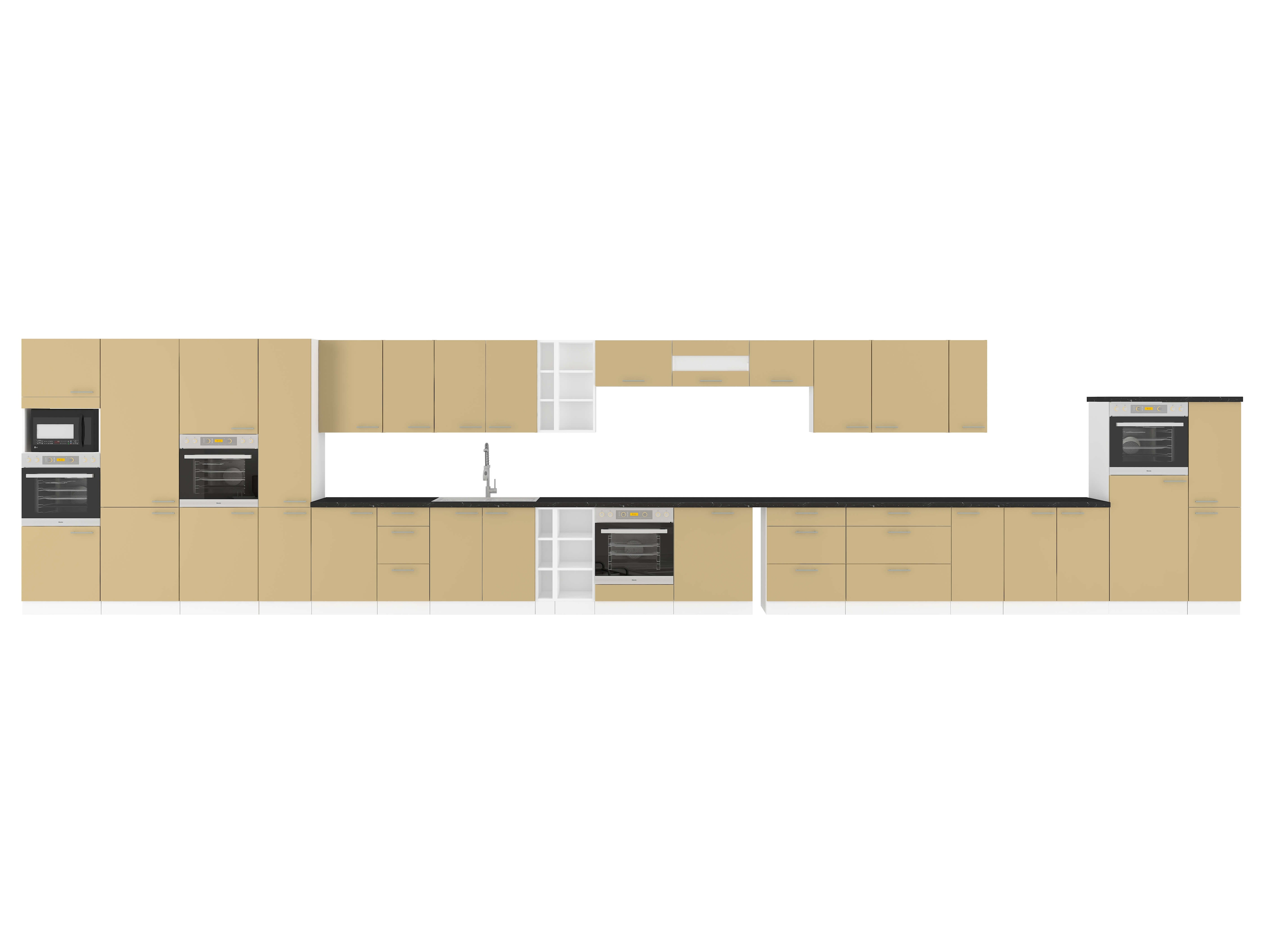 Nježna elegancija, ravne linije i dovoljno prostora za sav kuhinjski pribor. Zaboravite nered u kuhinji. Donji i gornji ormarići Lavera pružit će vam puno prostora za pohranu. Pojedinačni ormarići imaju sustav tihog zatvaranja vrata i tihog zaustavljanja ladica. Dostupan u nekoliko varijanti boja sa sjajnom površinom.