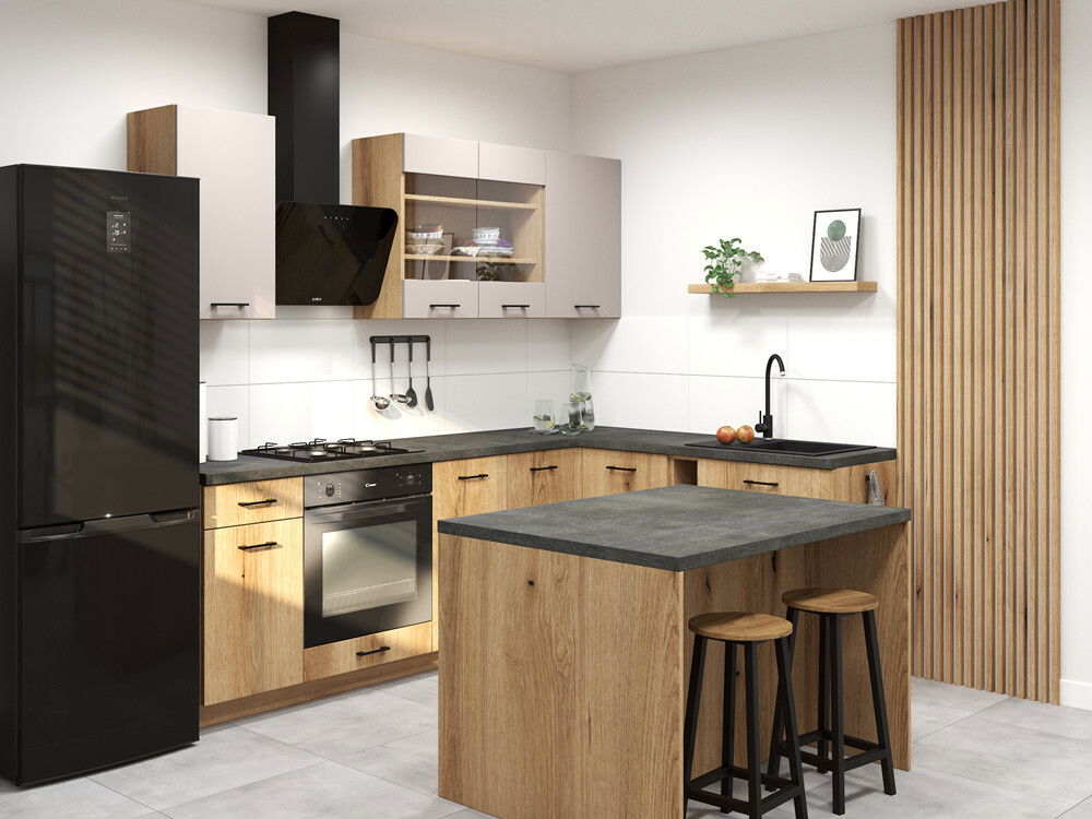 Kuhinjski otok Vestia 1 (crna + hrast evoke)
