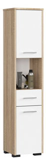 Visoki ormarić odličan je izbor za odlaganje ručnika, kozmetike ili košare za rublje. Obično ima visinu 150 cm i više. Što se tiče širine i dubine ormarića, ponuda je široka. Uži modeli širine 30 cm savršeno ispunjavaju prazne prostore u kupaonici. Možete odabrati bočne ormariće s policama ili ladicama. Neki tipovi imaju i ugrađenu košaru za rublje. Ormarić iznad umivaonika idealan je za odlaganje lijekova i kozmetike, a često uključuje i ogledalo.