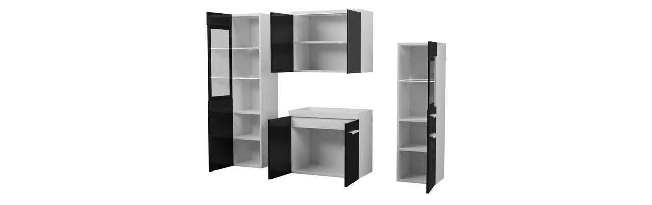 ABS (vidljiva mjesta), papir (nevidljiva mjesta),plastične ručke u aluminijskoj boji,zavjesni pantovi,djelomično lakirano, kaljeno staklo na vratima, prozirno na policama,sifon – dodatna opcija,LED bijela rasvjeta uz nadoplatu,umivaonik od dolomitnog konglomerata uključen u cijenu.Kao dodatnu opciju moguće je naručiti i slavinu za umivaonik.