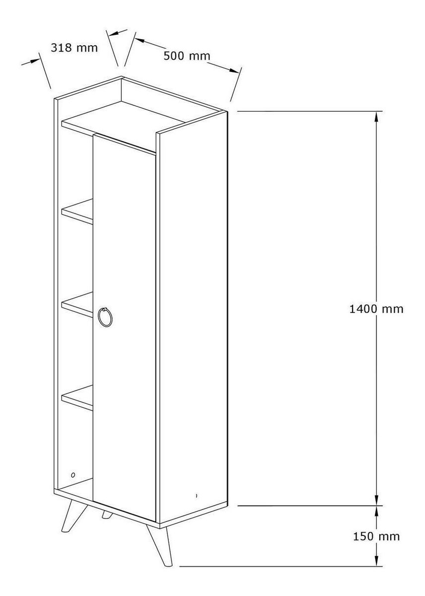 debljina: 18 mm, širina: 50 cm, visina: 140 cm, dubina: 31,8 cm, visina nogu: 15 cm