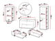 Korpus: lamelirana ploča debljine 16 mm, fronte: MDF ploča debljine 18 mm, rubovi obrađeni PVC furnirom, ručka: plastična kvaka u zlatnoj boji, hidraulične šarke, kuglične vodilice, sudoper uz doplatu, sifon uz doplatu, ogledalo ne uključeno u cijenu kompleta. Mogućnost kupnje iz naše ponude. Nema elemenata za zidnu montažu (šine i tiple) za zidne ormare 02 i 03 - kupac ih mora kupiti zasebno.