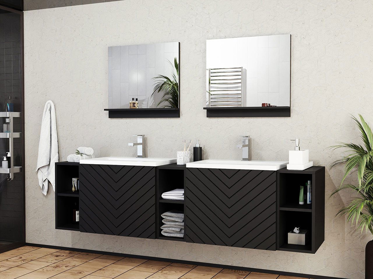 PrikazKupaonski set je idealan izbor za one koji traže udobnost i stil. Zidni kupaonski namještaj Najrip IV stvoren je za obiteljsku kupaonicu. Set kombinira prostrane ormariće i dva umivaonika. Svaki dio ima i otvorene police – nezamjenjive pretince za kupaonske potrepštine. Savršeno će izgledati i svježi ručnici. Set uključuje dva ogledala zahvaljujući kojima se svaka osoba koja koristi kupaonicu može pri uređenju frizure ili šminkanja slobodno ogledati. Karakterističan izgled kupaonskog seta Najrip IV naglašava moderan dizajn interijera. Moderne boje i frezirana riblja kost na prednjoj strani stvaraju jedinstveni efekt. Dimenzije: Zidni regal Najrip 05 x3: širina: 23 cm, visina: 50 cm, dubina: 35 cm. Ormarić ispod umivaonika Najrip x2: širina: 60 cm, visina: 50 cm, dubina: 35 cm. Umivaonik Najrip x2: širina: 60 cm, visina: 5 cm, dubina: 35 cm. Ogledalo Najrip 35/10/60 x2: širina: 50 cm, visina: 60 cm, dubina: 12 cm. Izvedba: korpus: 15 mm debela laminirana ploča, fronte: 16 mm debela MDF ploča, ABS + papirnati rubovi, valjkaste vodilice, skrivene šarke, bez ručki, sustav „PUSH TO OPEN“, umivaonik i ogledalo uključeni x2, sifon uz nadoplatu, umivaonske slavine prikazane na slici nisu uključene u cijenu. Jamstvo: 24 mjeseca.
