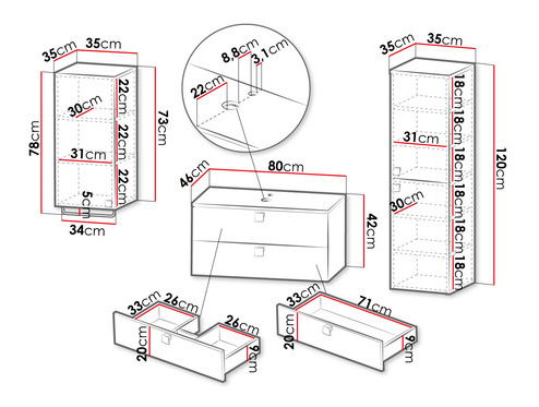 širina 35 cm, visina 78 cm, dubina 35 cm