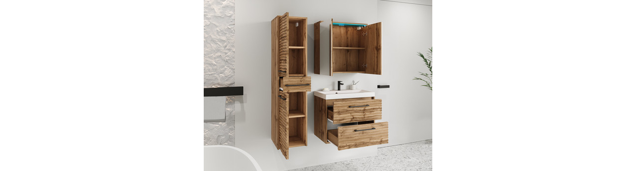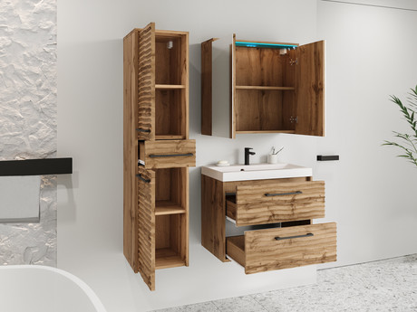 Kupaonski set Tameko I (hrast wotan + hrast wotan) (sa baterijom Economico BYU 020M) (s bijelom LED rasvjetom)