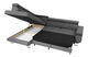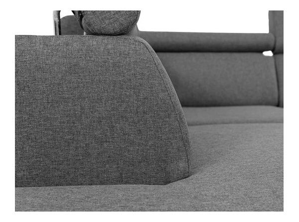 drveni okvir + vlaknasta ploča + valovita opruga + T 2844 pjena, debljina 5 cm,kutna sofa je na razvlačenje,ima funkciju spavanja,spremnik za posteljinu,podesivi nasloni za glavu,noge visine 13 cm, prednji dio od kromiranog metala,stražnji dio izrađen od plastike,tapecirani naslon fiksno pričvršćen,slobodnostojeća kutna sofa (stražnja strana presvučena tkaninom).