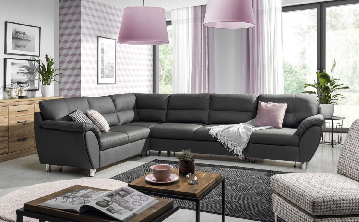 Elegantna kutna garnitura Arnor na masivnim metalnim nogama. Mogućnost razvlačenja. Garnitura je izrađena od kvalitetnih materijala.