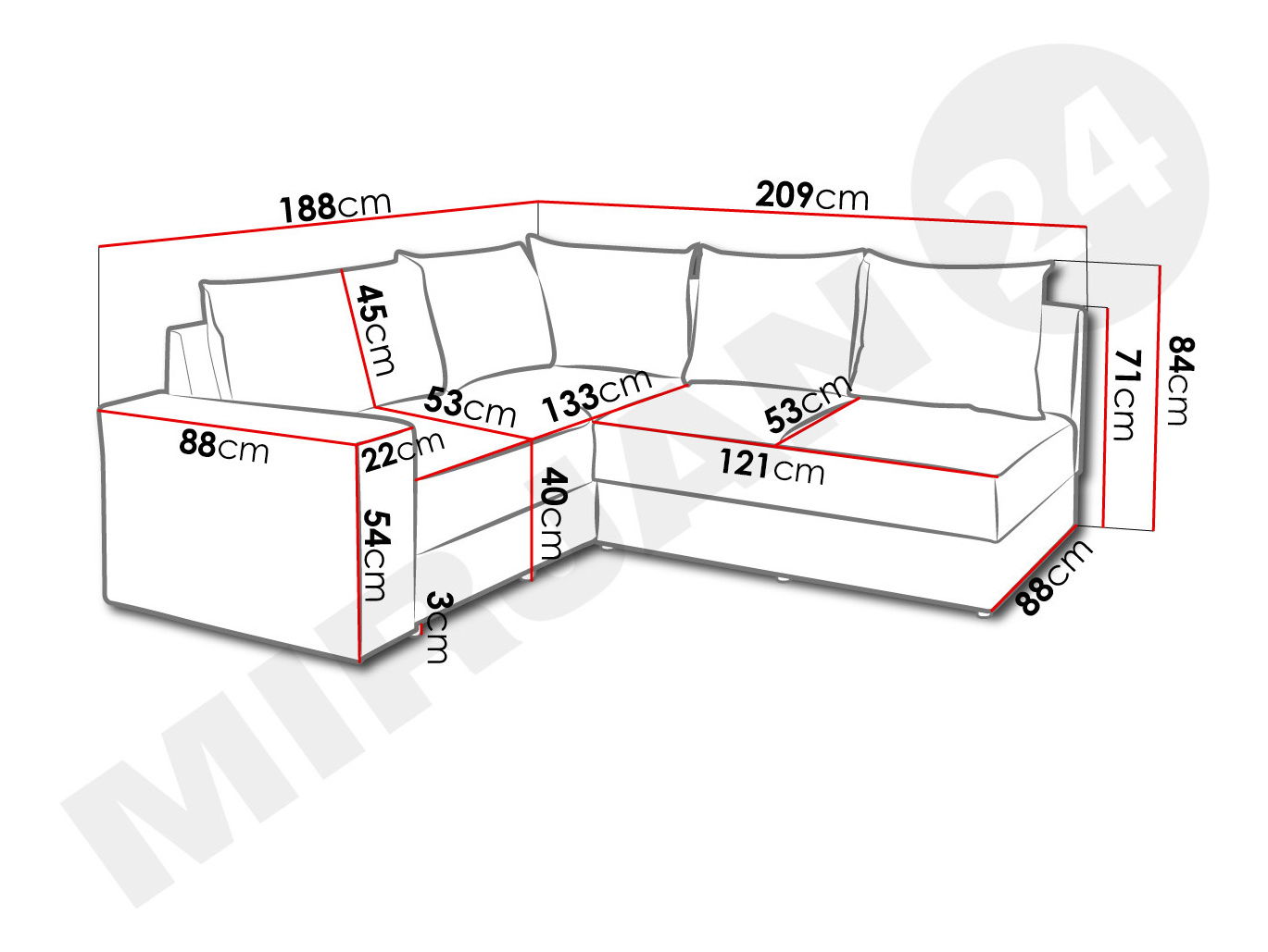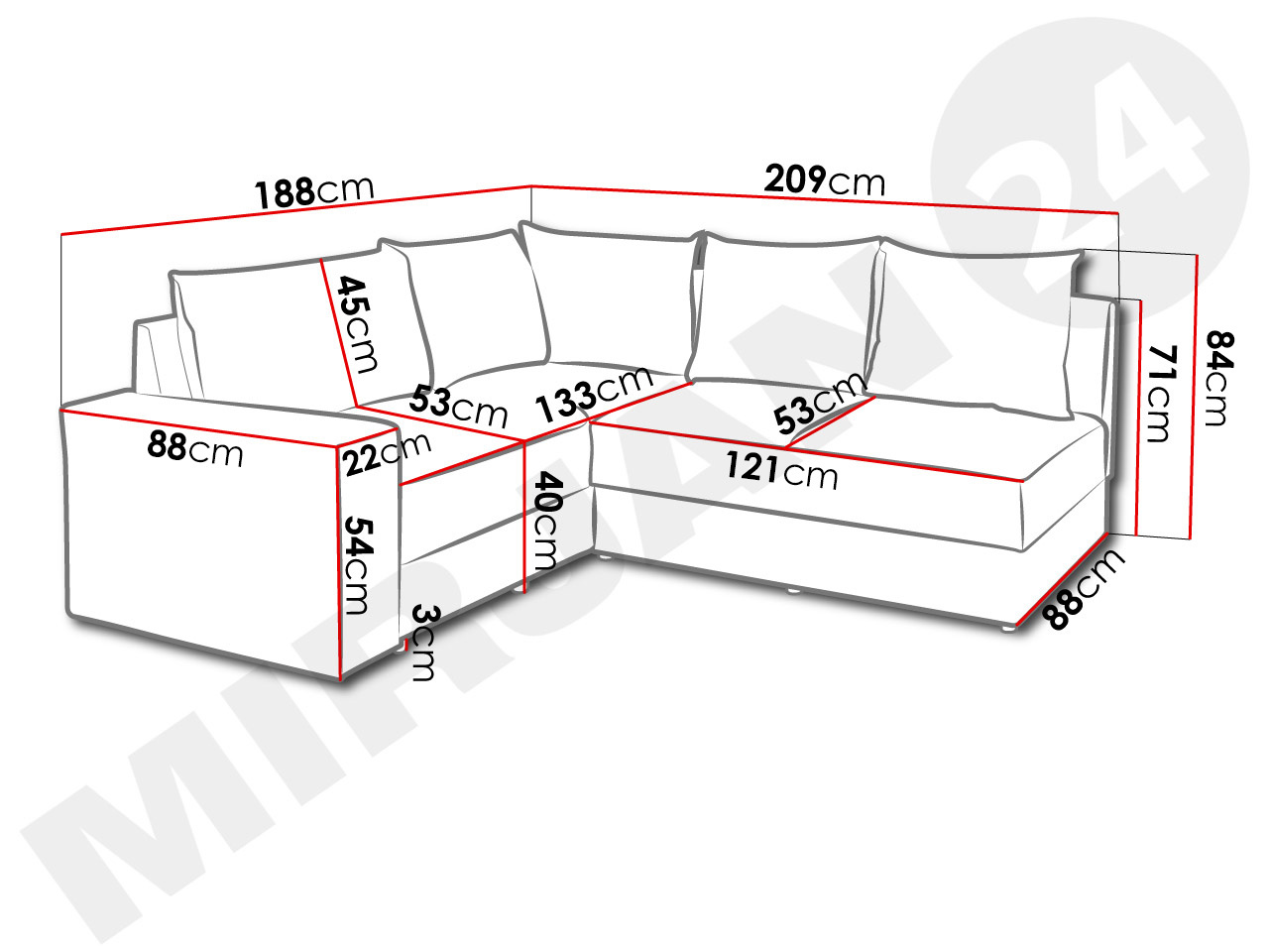 Kutna garnitura idealan je izbor za one koji traže udobnost i stil. Razveselite sebe i svoje bližnje. Uredite svoj dom s gracioznošću i elegancijom lijepo mjesto za odmor. Kupite kutnu garnituru Ageo, dodajte joj 1 ili 2 taburea i uronite u udobnost. Garnitura se svojim decentnim dizajnom uklapa u svaku dnevnu sobu. Dimenzije: dužina: 210 cm, širina: 190 cm, visina: 80 cm. Izvedba kuta: lijevi ili desni. Dodatne informacije: taburee možete naručiti ovdje. Drvena konstrukcija + iverica, visokoelastična pjena, Bonell opruge. Garancija: 24 mjeseca.