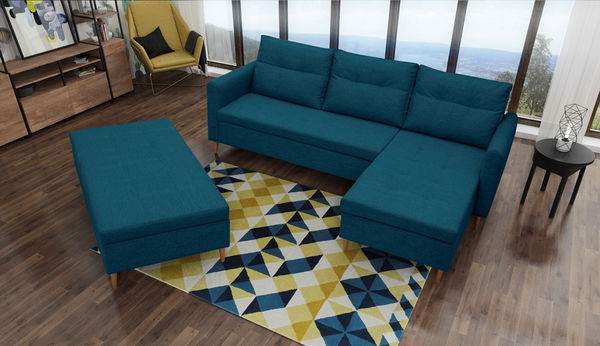 Kutna garnitura- Aurelio (petrolej) (s tabureom) (D)