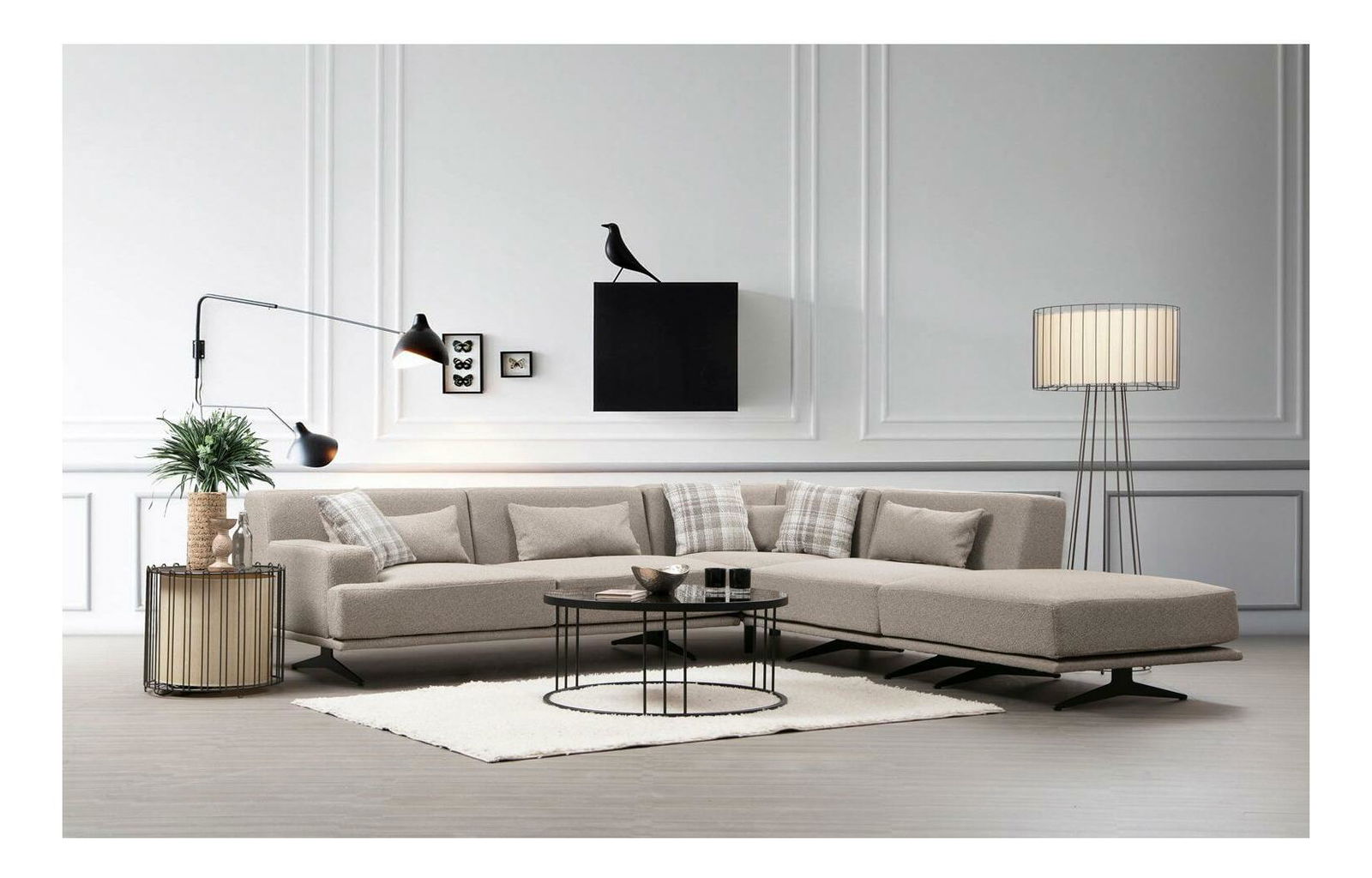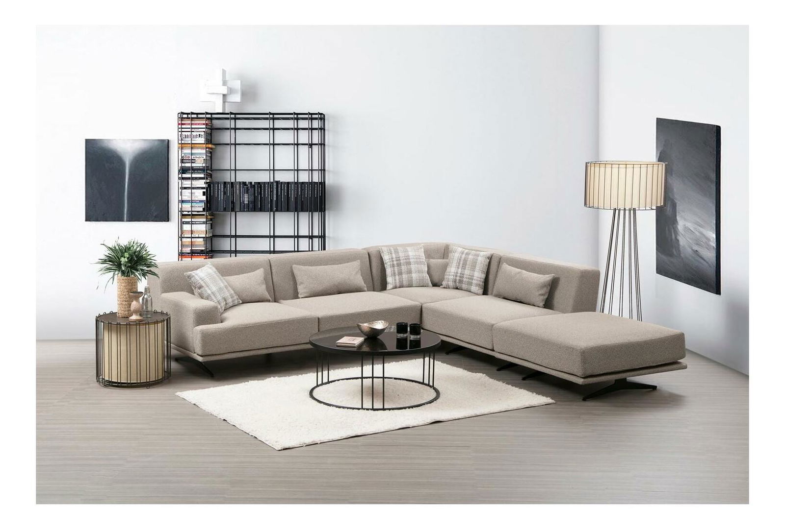 Kutna garnitura Bentelona (L) (bež + crna)