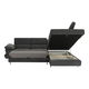 Moderna kutna garnitura bez mogućnosti razvlačenja. Ima podesivo uzglavlje i stabilnu drvenu konstrukciju. Jezgru čini opruga u kombinaciji s poliuretanskom pjenom veće gustoće. Noge su metalne u boji kroma.