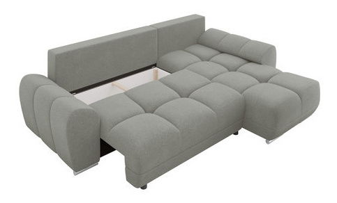 PrikazKutna garnitura je idealan izbor za one koji traže udobnost i stil. Moderna kutna garnitura Bordia u obliku slova L savršen je komad namještaja za obiteljsku dnevnu sobu. Prostrana garnitura dopunjena ležaljkom nudi mjesto za sjedenje i opuštanje u poluležećem položaju. Tijekom čitanja knjige, gledanja televizijskih serija ili pregledavanja omiljenih internetskih stranica možete se ovdje opustiti umotani u tkaninu ugodnu na dodir. Elegantnu kutnu garnituru s funkcijom spavanja moguće je i razvući. Pomicanjem garniture prema naprijed otkrivamo i spremnik za posteljinu. Ovaj diskretni pretinac idealan je za spremanje posteljine, toplih pokrivača ili sezonske odjeće. Dimenzije: duljina: 291 cm, širina: 183 cm, visina: 85 cm, Površina za spavanje: 220 x 130 cm, dimenzije spremnika: duljina: 147 cm, širina: 60 cm, visina: 24 cm Kutna strana: univerzalna (stranu bira kupac prilikom montaže) Izvedba: okvir: borovo drvo + 16 mm debela iverica, sjedalo i naslon: 8 cm debela pjena T28 + val opruga, kutna garnitura je na razvlačenje, automatski mehanizam tipa DL, ima funkciju spavanja, spremnik, plastične noge, naslon u obliku pomičnih jastuka punjenih granuliranom pjenom, jastuci na zatvarač, jastuci uključeni, slobodnostojeća kutna garnitura (leđa presvučena tkaninom) Jamstvo: 24 mjeseca.