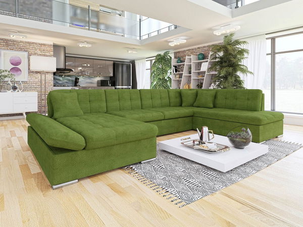 Tražite kutnu garnituru u obliku slova U koja će biti reprezentativni dio vašeg dnevnog boravka? Calla, kutna garnitura, sigurno će ispuniti vaša očekivanja. Garnitura Calla dizajnirana je u obliku slova U, s dva ležaja koja pružaju dodatna mjesta za sjedenje i služe kao udoban kauč za popodnevni odmor. Potrebno je obratiti pažnju na naslone za ruke. Zahvaljujući inovativnom sustavu, možete prilagoditi svoj položaj prema vlastitim potrebama. Još jedna prednost garniture je funkcija za spavanje i veliki spremnik za posteljinu.