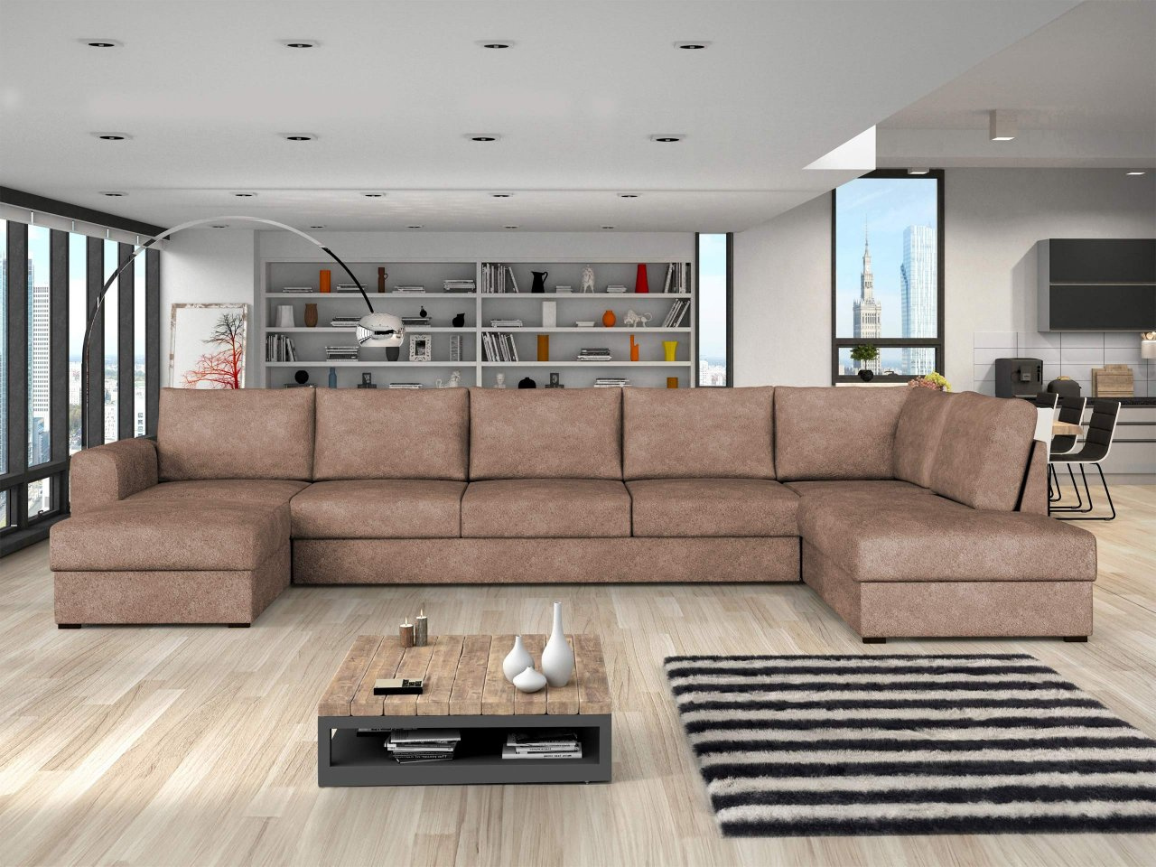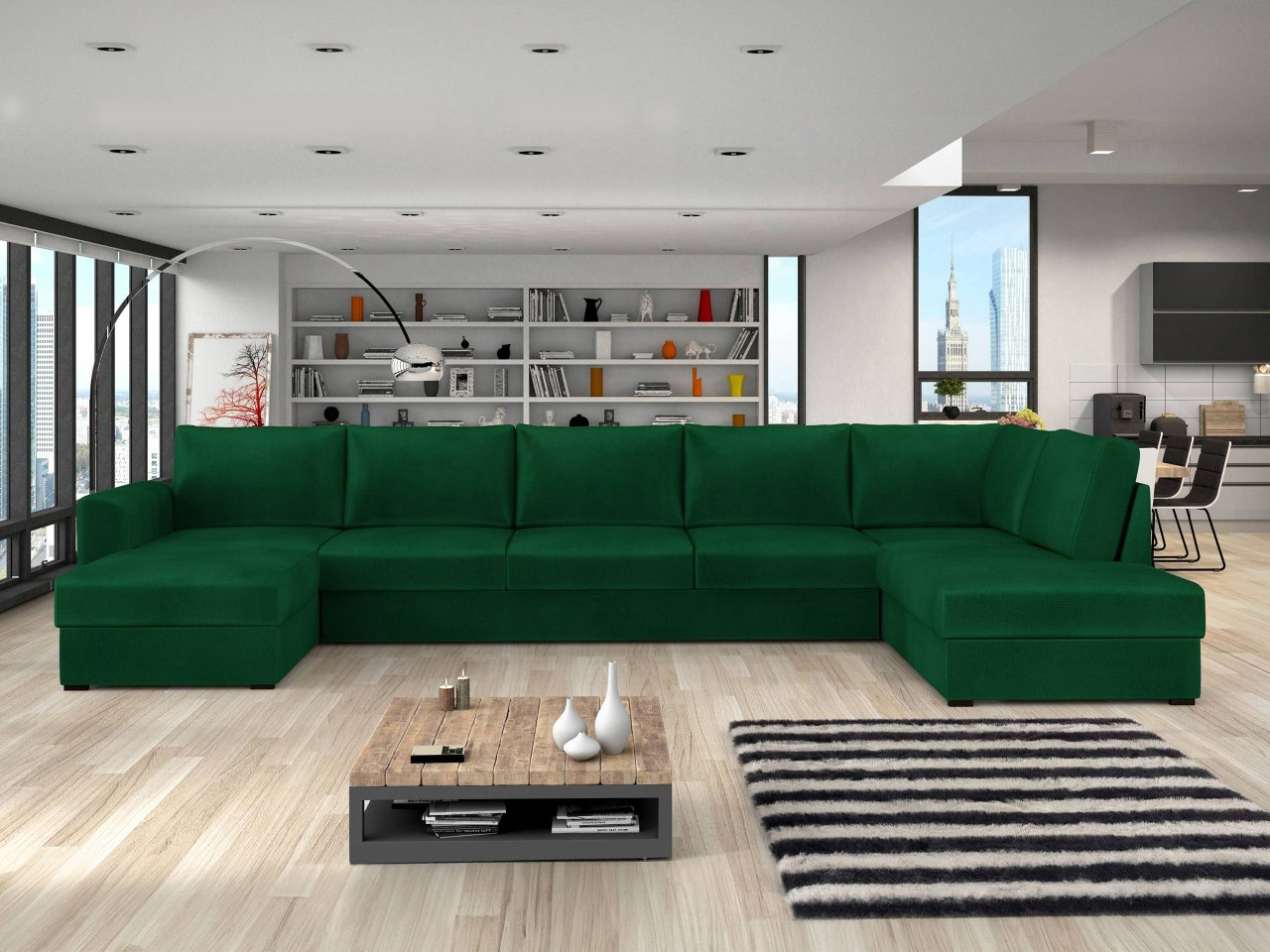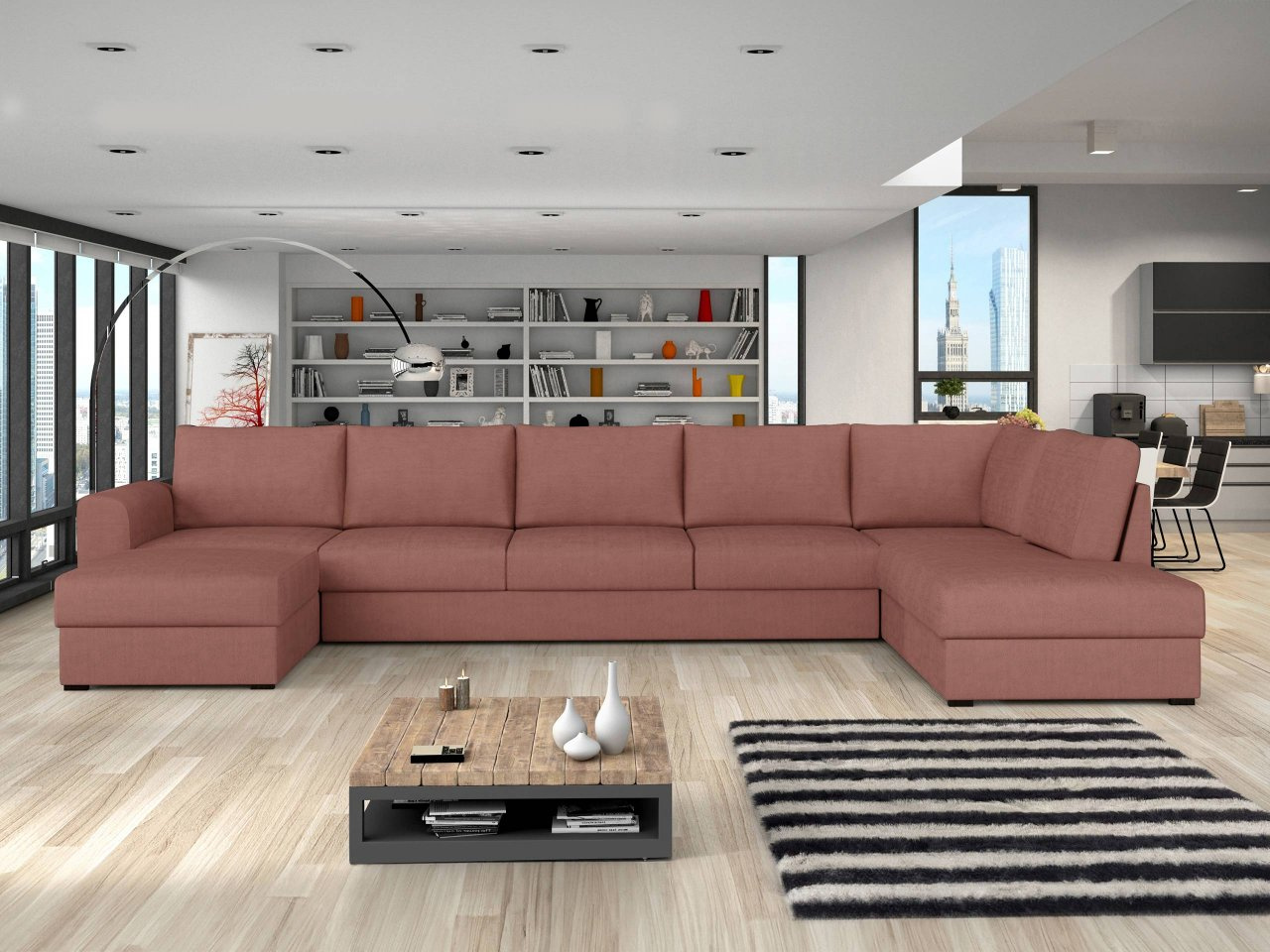 PrikazGarnitura je idealan izbor za one koji traže udobnost i stil. Ako ste jedan od sretnika s prostranim dnevnim boravkom, kutna garnitura Szafran kao stvorena je za vas! Pružit će vam ne samo mnogo prostora za sjedenje i odmor, nego se po potrebi može i rasklopiti te osigurati ležaj za spavanje. Garnitura ima funkciju na razvlačenje i prostrane spremnike koji su idealni za posteljinu i druge dodatke. Kutna garnitura ima oblik "U" i omogućuje jednostavniju komunikaciju osoba koje sjede jedna nasuprot drugoj. Još jedna prednost garniture Szafran Large je što je možete postaviti bilo gdje u prostoriji – riječ je o slobodno stojećem modelu čija je stražnja strana također tapecirana. Garnitura je izrađena od kvalitetnih i izdržljivih materijala koji jamče dugotrajnost i savršen izgled. Dimenzije: duljina: 370 cm, širina: 186 cm, visina: 85 cm, ležaj: 340 x 141 cm. Spremnici (2 kom): duljina: 180 cm, širina: 80 cm, visina: 21 cm i duljina: 150 cm, širina: 69 cm, visina: 21 cm. Strana: lijeva ili desna. Izvedba: sjedište – drveni okvir + val opruga + filc + pjena T2844 debljine 11 cm, naslon: drveni okvir + HDF ploča + pjena T2844 debljine 1 cm. Funkcija rasklapanja, funkcija spavanja, oblik U, dva spremnika za posteljinu, jastuci u cijeni (7 velikih) – s patentnim zatvaračem, naslon u obliku jastuka, drvene noge (tamni orah), slobodno stojeća garnitura (tapecirana tkaninom). Jamstvo: 24 mjeseca.
