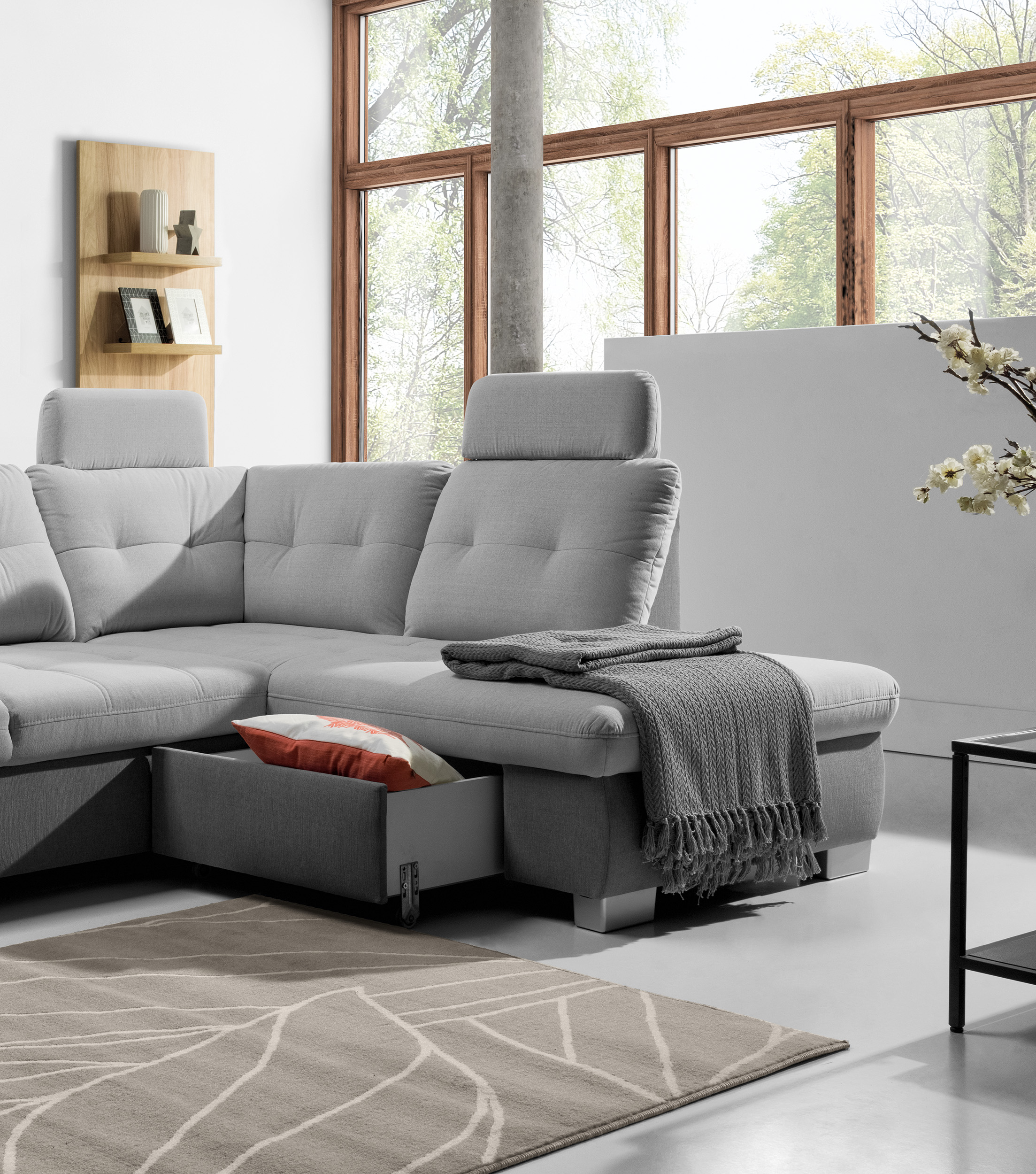 Kutna garnitura Cerasta tapecirana je i sa stražnje strane, stoga ju bez problema možete postaviti u središte prostorije. Izrađena je od kvalitetnih materijala.