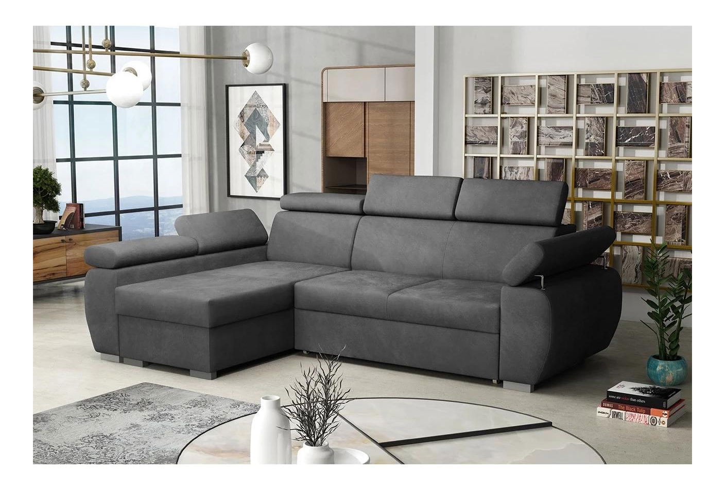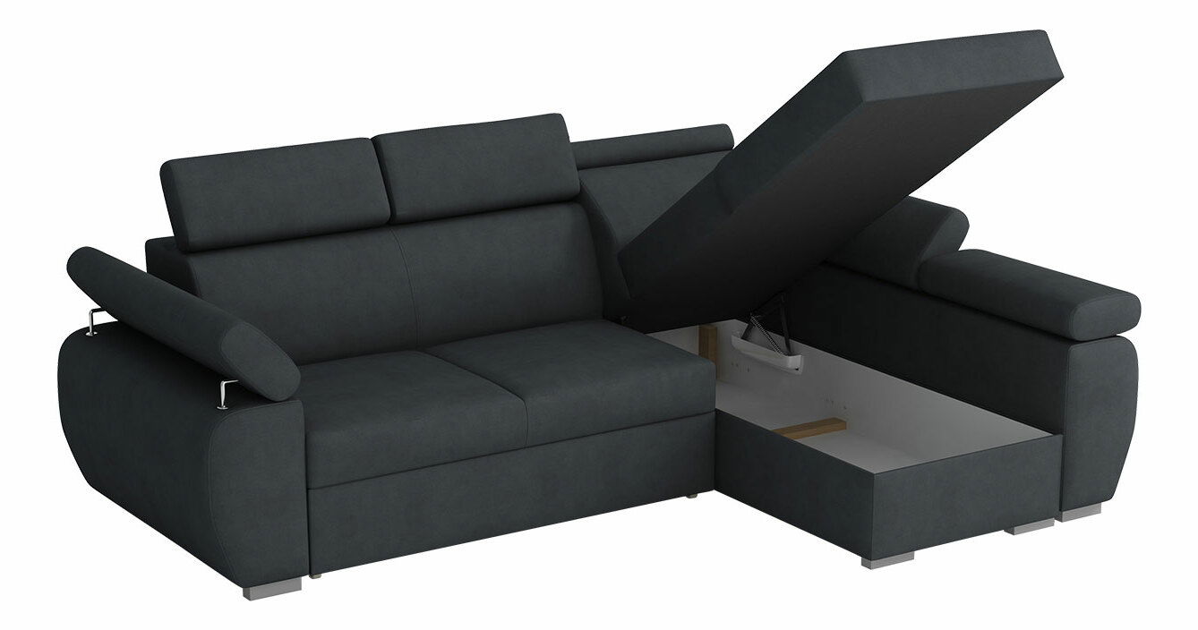 PrikazVaša udobnost dok se opuštate u dnevnoj sobi naš je prioritet. Zato smo za vas pripremili kutnu garnituru Coral s prostorom za pohranu koja uključuje podesive naslone za glavu za veću udobnost. Postavke svakog od njih mogu se posebno podešavati, što će značajno povećati standard sjedenja ili opuštanja. Sa automatskim sustavom rasklapanja, koji olakšava rasklapanje, možete u trenu pripremiti mjesto za spavanje optimalnih dimenzija za dvije osobe.