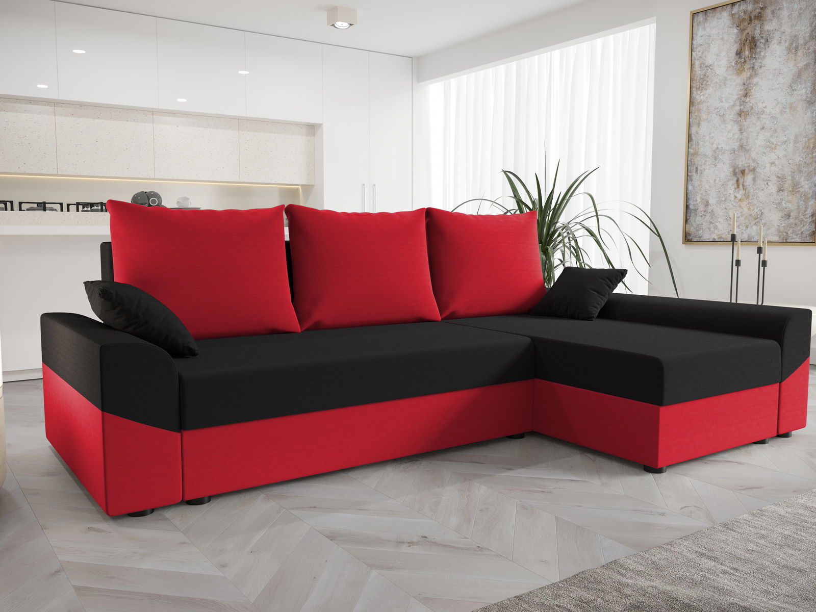 Kutna garnitura Dusk L (crvena + crna) (D)