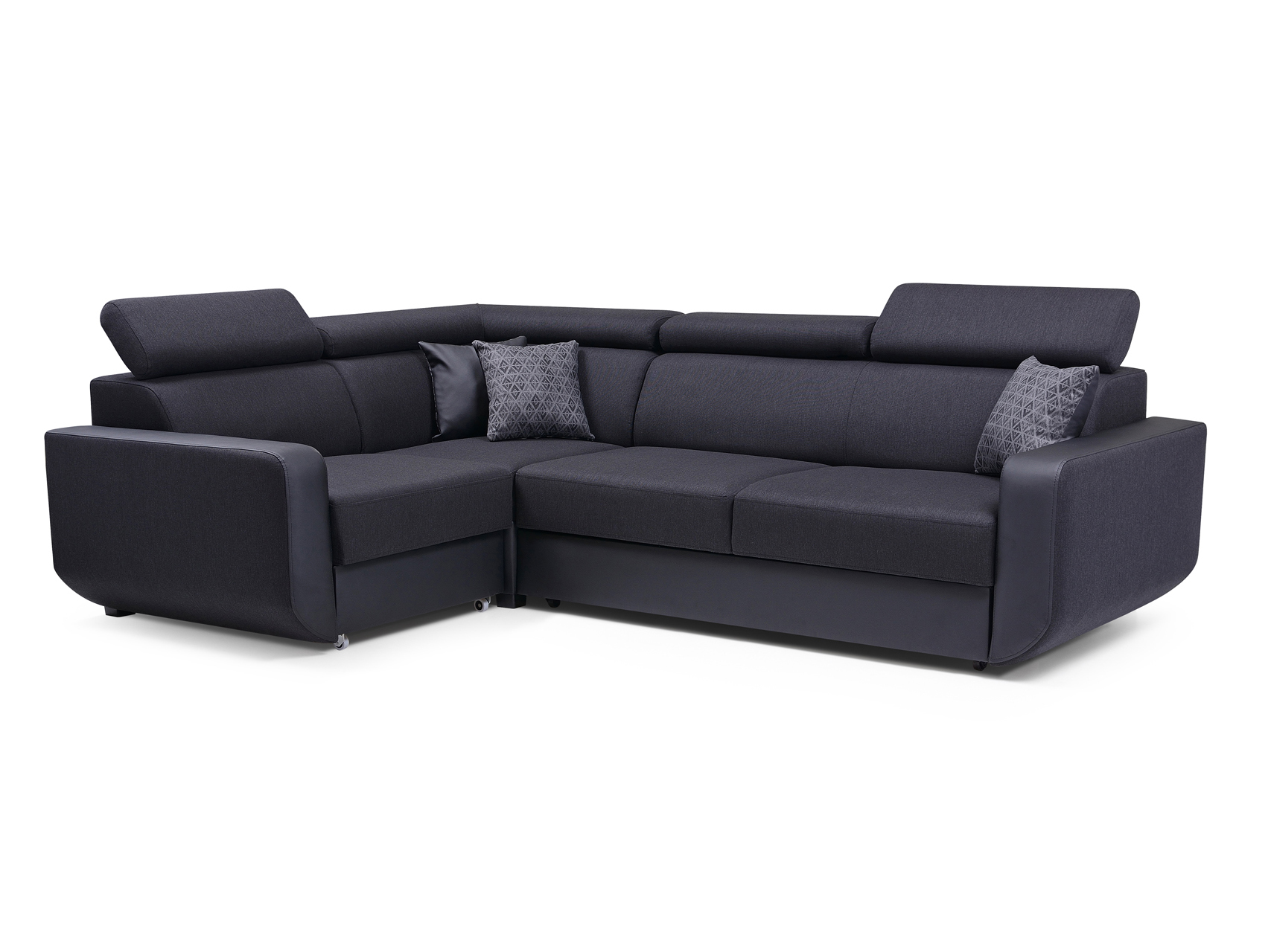 Vrlo udobna kutna garnitura Elden jednostavnog dizajna. Ima podesive naslone za glavu i može se razvući.