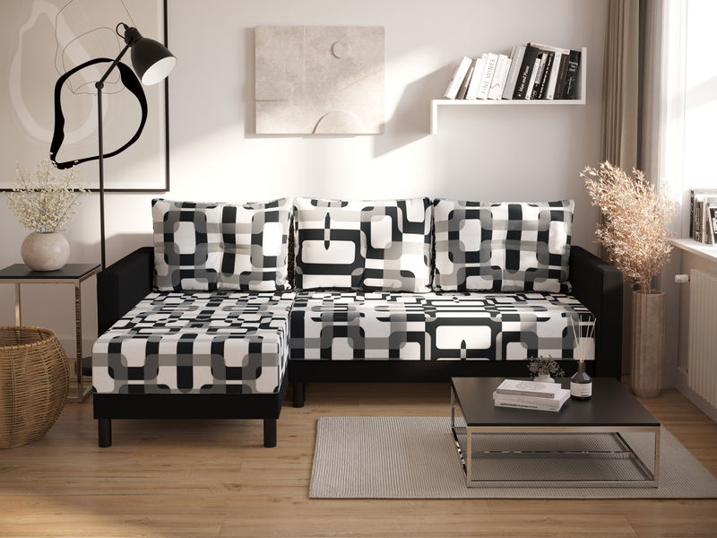 Kutna garnitura Glimmer L (crna + šareno) (L)