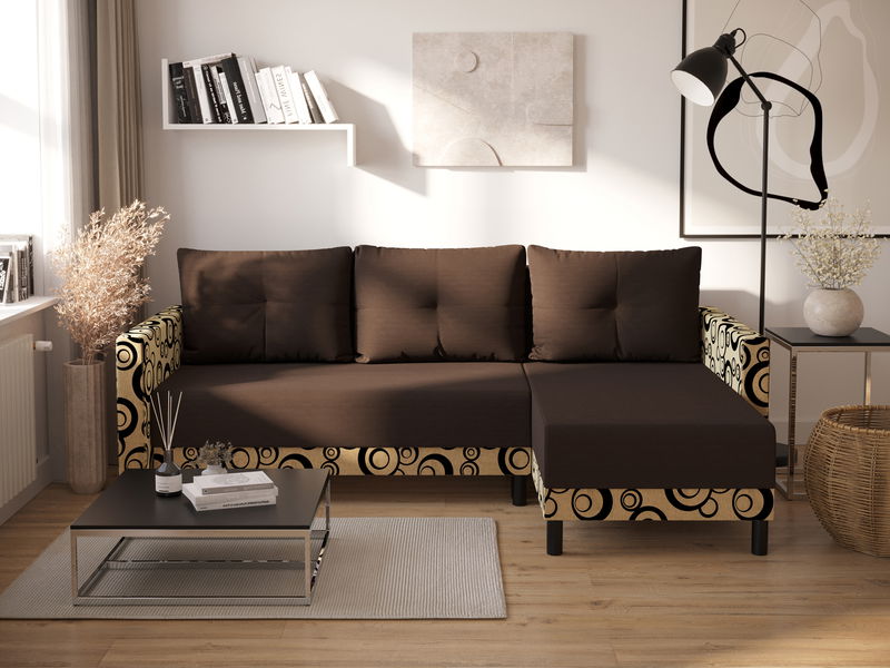 Kutna garnitura Glimmer L (tamnosmeđa + šareno) (D)