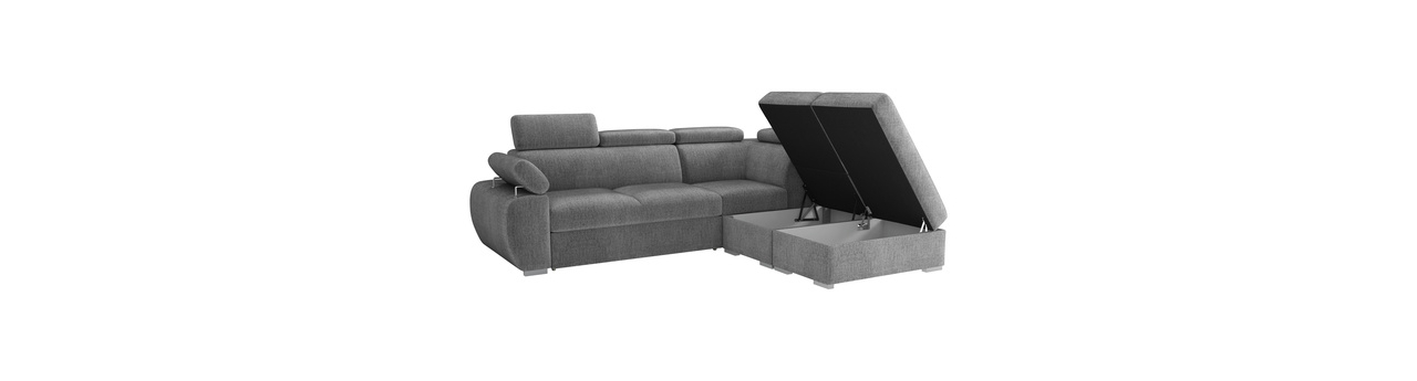 Kutna garnitura Gozo 2RR1P (tamnosiva) (s prostorom za odlaganje) (L)