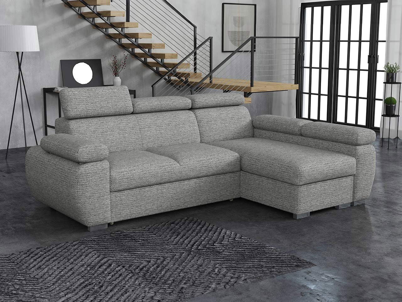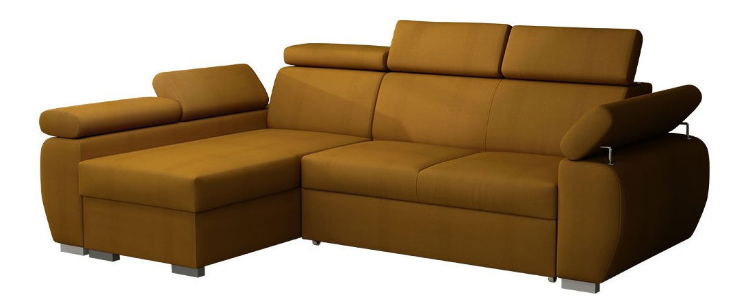 PrikazKutna garnitura je idealan izbor za one koji traže udobnost i stil. Vaša udobnost tijekom opuštanja u dnevnoj sobi naš je prioritet. Zato smo za vas pripremili kutnu garnituru Giza Mini s prostorom za pohranu i podesivim naslonima za glavu za još veći komfor. Svaki naslon moguće je prilagoditi zasebno, čime se značajno podiže standard sjedenja i opuštanja. Zahvaljujući sustavu razvlačenja automat, garnitura se u trenu pretvara u ležaj optimalnih dimenzija za dvije osobe. Dimenzije: duljina: 255 cm, širina: 170 cm, visina: 85–100 cm, ležaj: 200 x 130 cm. Kutna strana: lijeva ili desna. Izvedba: okvir: 6 cm debelo borovo drvo + 16 mm iverica + 16 mm MDF ploča, naslon: T30/38 pjena, sjedalo: T30/38 pjena + valovita opruga tip B, nasloni za glavu: T23/15 pjena, funkcija razvlačenja automat, prostor za pohranu, kromirane metalne noge (već unaprijed montirane), podesivi nasloni za glavu, čvrsto pričvršćen tapecirani naslon, potpuno tapecirana garnitura pogodna i za smještaj u središtu prostorije. Dimenzije spremišta: duljina: 165 cm, širina: 62 cm, visina: 23 cm. Jamstvo: 24 mjeseca.