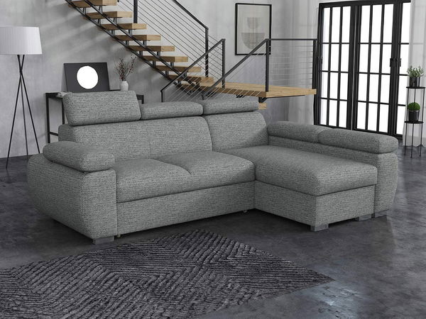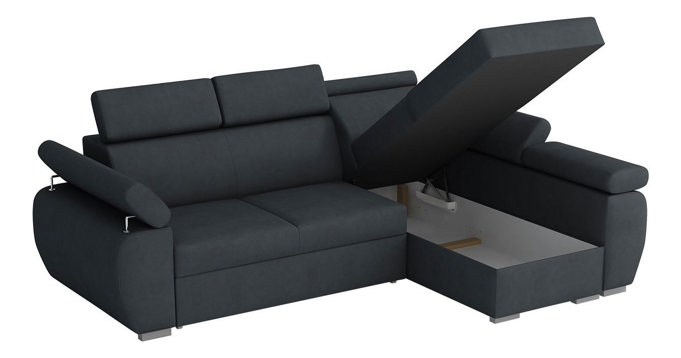 PrikazKutna garnitura je idealan izbor za one koji traže udobnost i stil. Vaša udobnost tijekom opuštanja u dnevnoj sobi naš je prioritet. Zato smo za vas pripremili kutnu garnituru Giza Mini s prostorom za pohranu i podesivim naslonima za glavu za još veći komfor. Svaki naslon moguće je prilagoditi zasebno, čime se značajno podiže standard sjedenja i opuštanja. Zahvaljujući sustavu razvlačenja automat, garnitura se u trenu pretvara u ležaj optimalnih dimenzija za dvije osobe. Dimenzije: duljina: 255 cm, širina: 170 cm, visina: 85–100 cm, ležaj: 200 x 130 cm. Kutna strana: lijeva ili desna. Izvedba: okvir: 6 cm debelo borovo drvo + 16 mm iverica + 16 mm MDF ploča, naslon: T30/38 pjena, sjedalo: T30/38 pjena + valovita opruga tip B, nasloni za glavu: T23/15 pjena, funkcija razvlačenja automat, prostor za pohranu, kromirane metalne noge (već unaprijed montirane), podesivi nasloni za glavu, čvrsto pričvršćen tapecirani naslon, potpuno tapecirana garnitura pogodna i za smještaj u središtu prostorije. Dimenzije spremišta: duljina: 165 cm, širina: 62 cm, visina: 23 cm. Jamstvo: 24 mjeseca.