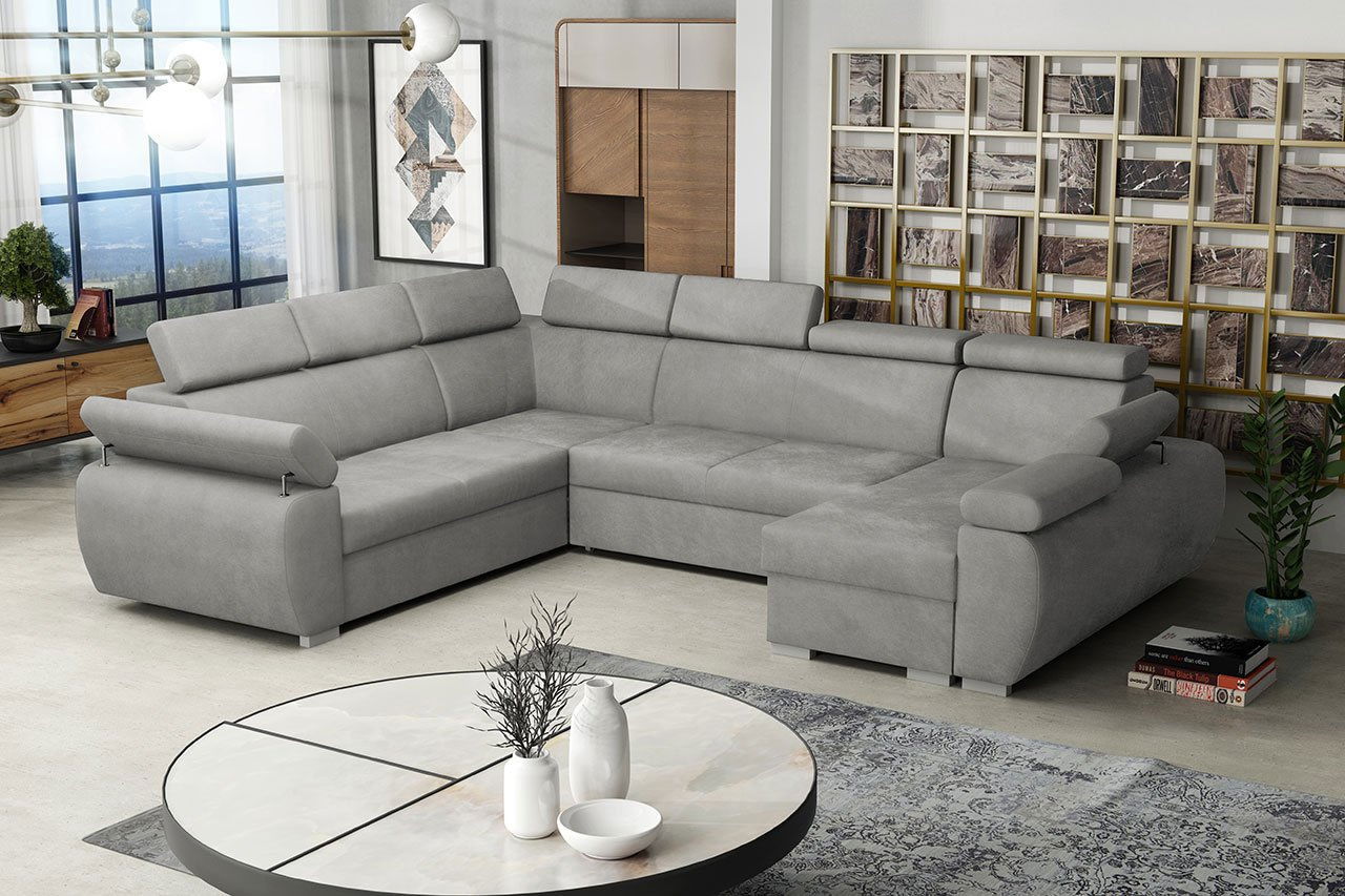 T23/15 pjena,garnitura je razvlačiva,automat za lako razvlačenje,ima funkciju spavanja,prostor za odlaganje posteljine,metalne kromirane noge (već predizbušene u namještaju),podesivi nasloni za glavu,tapecirani naslon čvrsto pričvršćen,slobodno stojeći model (naslon presvučen tkaninom).