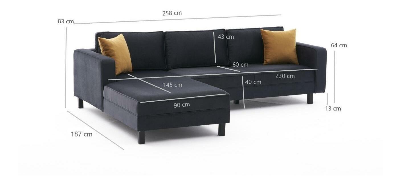 Ovaj proizvod je izrađen od tkanine i bukovog drveta. Njegove dimenzije su 258 cm širina, 83 cm visina i 181 cm dubina, što ga čini idealnim dodatkom vašem domu.