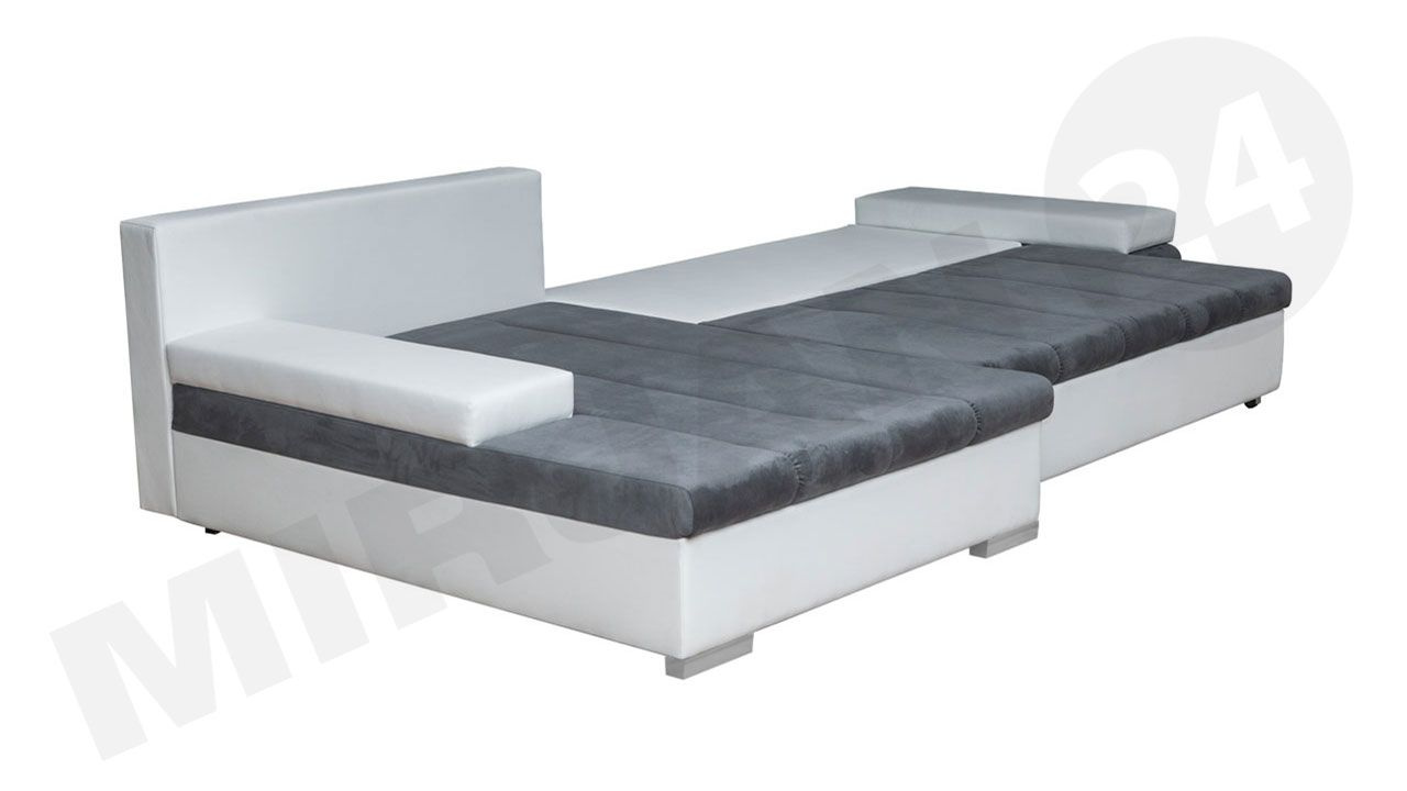 Drveni okvir + iverica,visoko elastična pjena T 2844,valovita opruga,jastuci s patentnim zatvaračem,funkcija spavanja,prostor za odlaganje,elegantne kromirane noge,slobodno stojeća kutna garnitura (naslon obložen tkaninom).