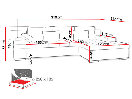 Kutna garnitura je idealan izbor za one koji traže udobnost i stil. Kutnu garnituru na razvlačenje Kanton voljet će ljudi koji cijene udobnost, moderan dizajn i visoku funkcionalnost tapeciranog namještaja. Namještaj ima prostor za pohranu posteljine. Dodatno mjesto za spavanje korisno je kada dođu gosti. Set uključuje udobne jastuke s patentnim zatvaračima. Kutna sofa svoj elegantan izgled duguje modernom dizajnu i zanimljivim šavovima duž sjedala. Ovaj komad namještaja nesumnjivo će biti ukras vašeg dnevnog boravka i idealno mjesto za susret s voljenima. Dimenzije: širina: 310 cm dubina: 175 cm visina: 83 cm površina za spavanje: 250 x 135 cm dimenzije prostora za pohranu: 152 x 55 x 21 cm strana kuta: lijeva ili desna Dizajn: drveni okvir + iverica visokoelastična pjena T 2844 valoviti opružni jastuci s patentnim zatvaračem funkcija spavanja prostor za pohranu elegantne kromirane noge samostojeća kutna sofa (naslon prekriven tkaninom) Jamstveni rok: 24 mjeseca