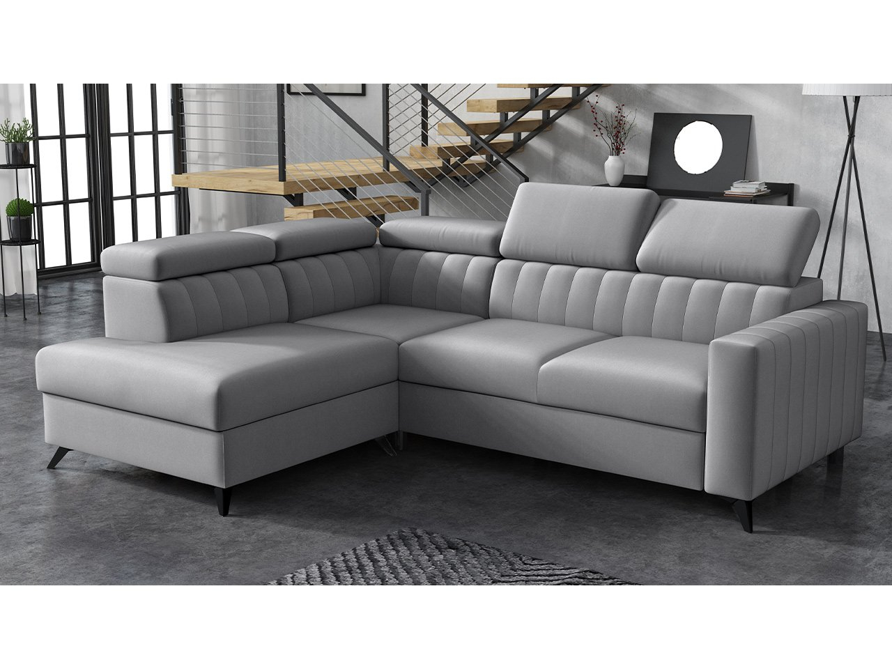 Kutna garnitura Laviosuna 2RRLXP (siva) (s prostorom za odlaganje) (L)
