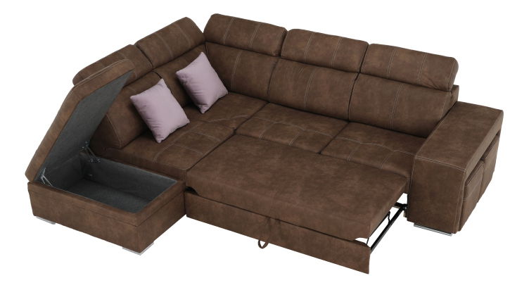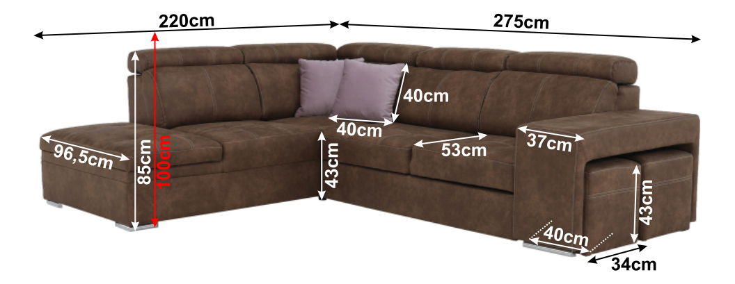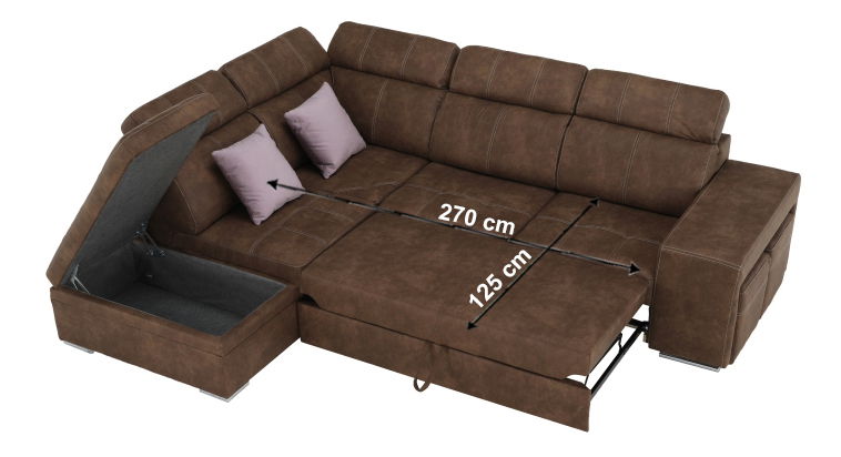 Moderna kutna garnitura Lazare dolazi s 2 taburea koja su uvučena u naslone za ruke. Mogućnost razvlačenja na površinu 120 x 190 cm. Dostupna je lijeva i desna varijanta, a boju tkanine i jastuka možete izabrati.