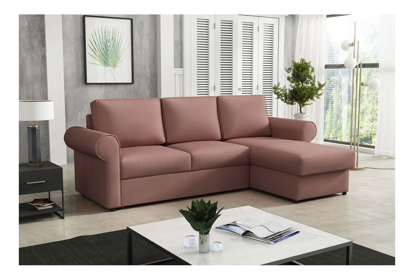 PrikazKutna garnitura je idealan izbor za one koji traže udobnost i stil. Kutna garnitura Madrid impresionira ne samo svojom udobnošću, već i elegantnim izgledom! Kutna garnitura izrađena je u obliku slova „L“ i nudi prostrano sjedište. Karakterističan element su blago zaobljeni nasloni za ruke koji garnituri daju elegantan izgled! Korištena pjena i kvalitetne komponente odgovorne su za udobno korištenje. Kutna garnitura dodatno ima funkciju spavanja i spremnik za posteljinu. Rasklapanje garniture je jednostavno i brzo zahvaljujući automatskim mehanizmima. U setu su i jastuci koji stvaraju udoban naslon. Dimenzije: duljina: 246 cm, širina: 155 cm, visina: 90 cm, površina za spavanje: 202 x 135 cm. Kut: univerzalan (kupac bira stranu pri montaži). Izvedba: okvir: borovina + iverica, sjedište: T25/42 pjena + val opruge, naslon: T25/42 pjena, automatski sustav za jednostavno rasklapanje, funkcija spavanja, spremnik za posteljinu, plastične noge, naslon u obliku pomičnih jastuka, jastuci u setu s patentnim zatvaračem, garnitura nije slobodnostojeći model (stražnja strana nije presvučena tkaninom). Dimenzije spremnika: duljina: 146 cm, širina: 62 cm, visina: 21,5 cm. Jamstvo: 24 mjeseca.