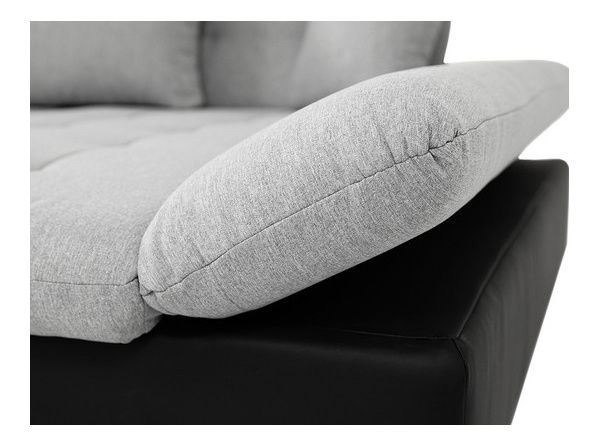 drveni okvir + iverica,poliuretanska pjena + valovita opruga,bez funkcije spavanja,bez prostora za pohranu,jastuci uključeni u cijenu,jastuci s patentnim zatvaračem,kromirane plastične noge,samostojeća (stražnja strana presvučena tkaninom),podesivi nasloni za ruke