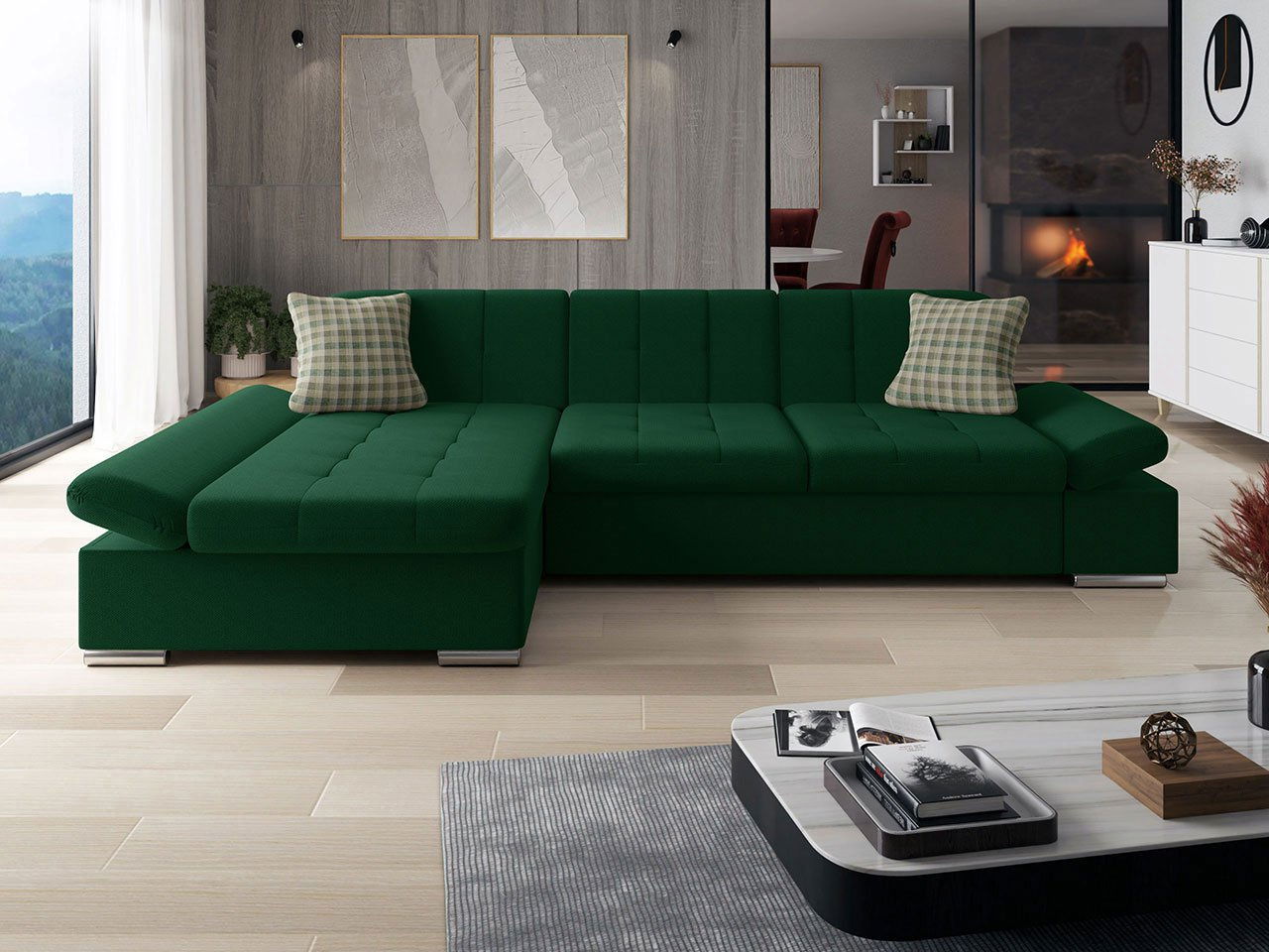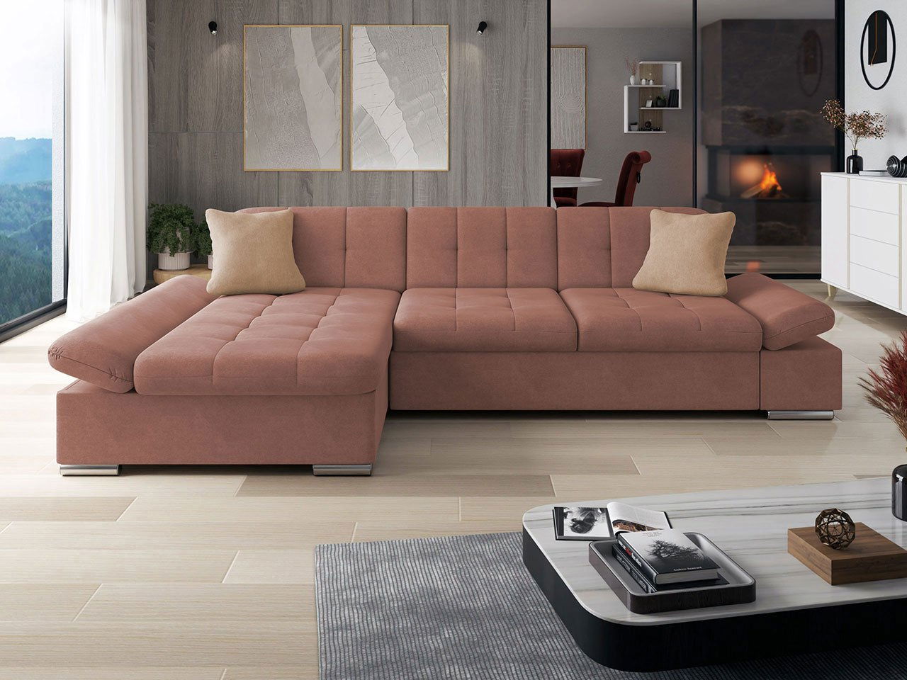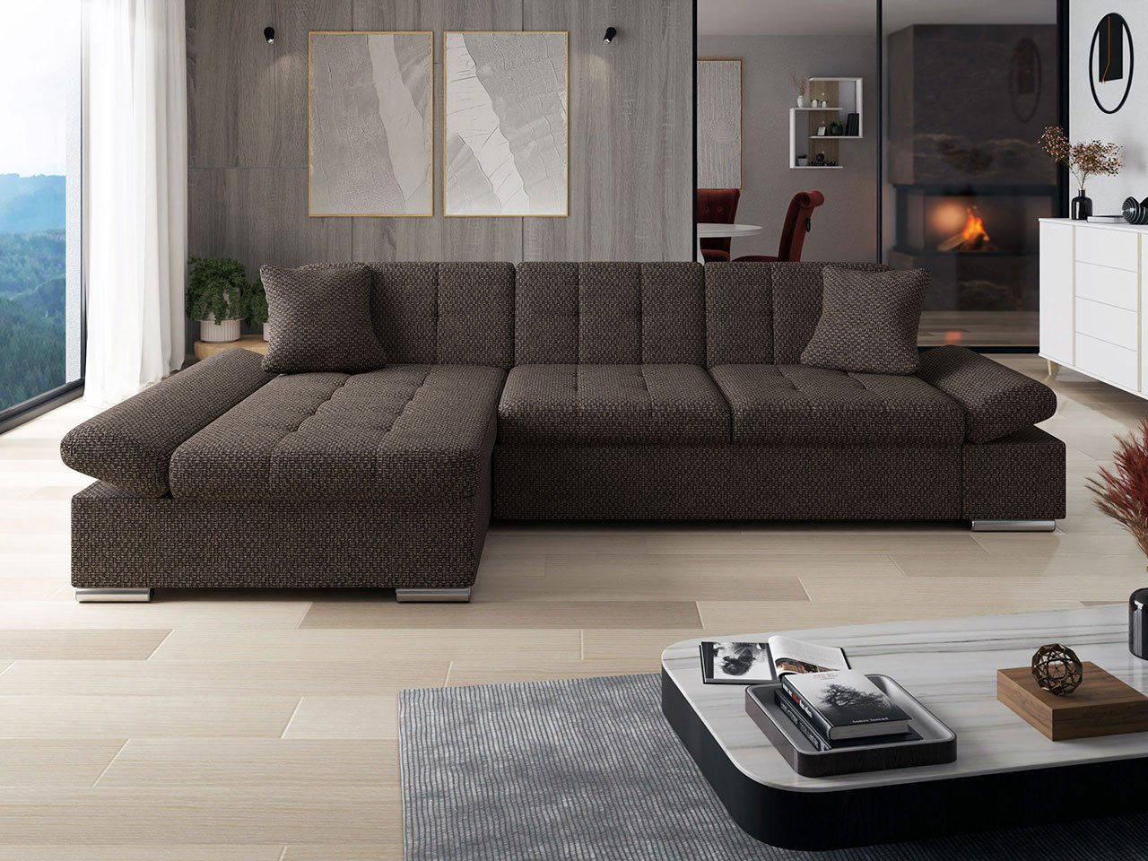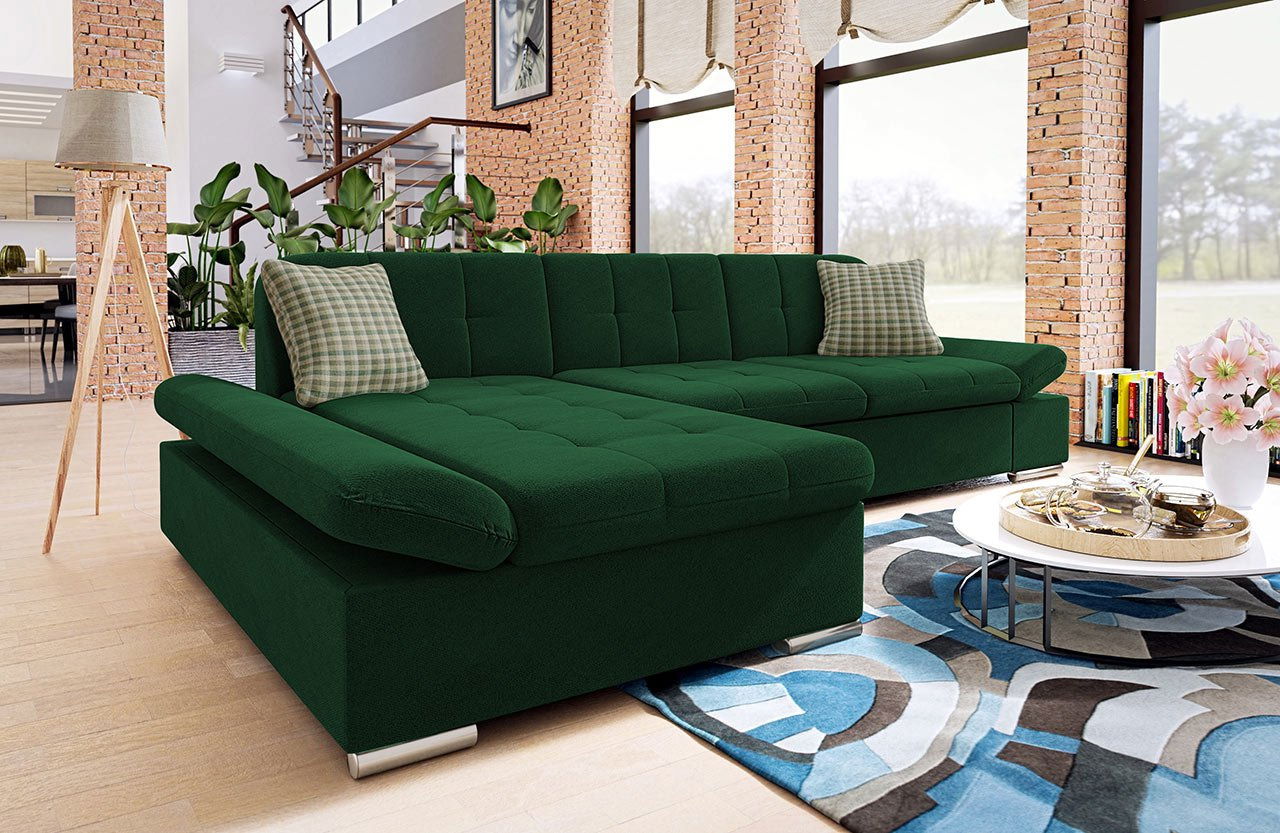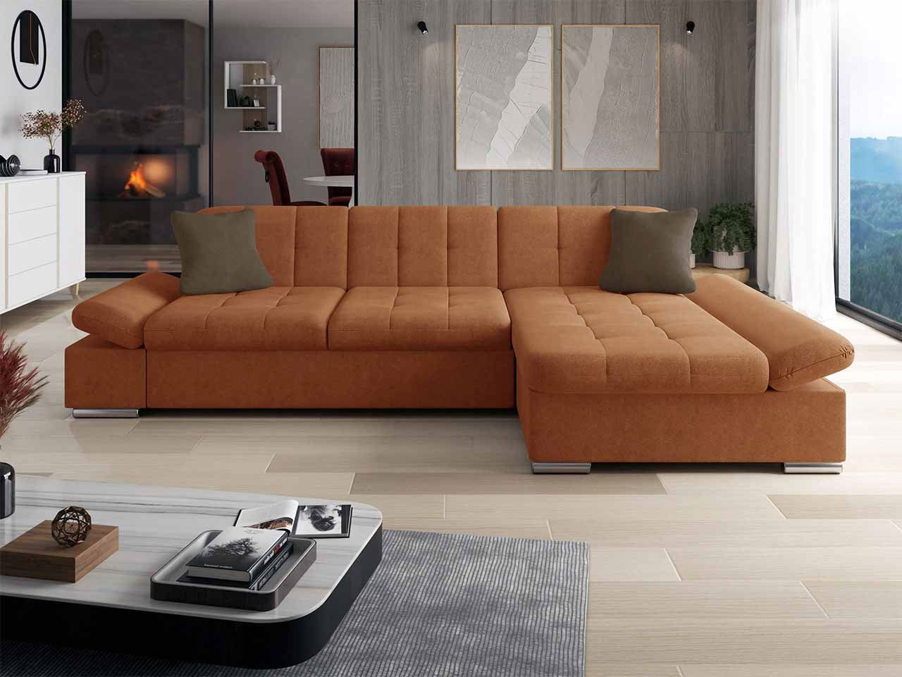 Kutna garnitura je idealan izbor za one koji traže udobnost i stil. Kutna garnitura Magnir je komad namještaja koji će unijeti dašak svježine u vašu okolinu i omogućiti vam da se udobno odmorite nakon cjelodnevnog rada. Bit će središte opuštanja i obiteljskih okupljanja. Zanimljive kombinacije različitih nijansi pružit će neograničene mogućnosti dizajna. Ovaj model nudi i podesive naslone za ruke koji značajno povećavaju kvalitetu korištenja. Garnitura sadrži i jastuke s patentnim zatvaračem. Kutna garnitura za dnevni boravak je slobodnostojeća. Zahvaljujući tome, svoje interijere uredite bez problema i u skladu s vlastitom vizijom. Dimenzije: duljina: 278 cm, širina: 161 cm, visina: 76 cm. Kutna strana: lijeva ili desna. Izvedba: drveni okvir + iverica, poliuretanska pjena + valovita opruga, bez funkcije spavanja, bez spremnika, jastuci uključeni, jastuci na patentni zatvarač, kromirane plastične noge, slobodnostojeća (stražnja strana presvučena tkaninom), podesivi naslon za ruke. Jamstvo: 24 mjeseca.