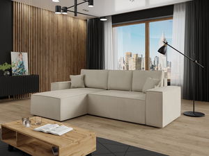 Kutna garnitura idealan je izbor za one koji traže udobnost i stil. Kutna garnitura Maryn L savršena je za uređenje dnevnog boravka. Zahvaljujući svojoj funkcionalnosti poslužit će i danju i noću. Njezin zanimljiv dizajn oduševit će sve članove obitelji i goste. Garnitura ima i spremnik za posteljinu, što pridonosi urednosti prostora. Ova praktična kutija odlična je opcija jer model nudi prostor za dnevni odmor, ali i za ugodno spavanje. Naslon se sastoji od jastuka na zatvarač. Njihova prednost je mogućnost podešavanja prema vlastitim potrebama. Kutna garnitura za dnevni boravak slobodnostojećeg je tipa, što olakšava uređenje interijera. Dimenzije: duljina: 279 cm, širina: 181 cm, visina: 94 cm, površina za spavanje: 223 x 137 cm, dimenzije spremnika: duljina: 128 cm, širina: 68 cm, visina: 24 cm. Strana kuta: lijeva ili desna. Izvedba: okvir – borovina + 16 mm iverica, sjedište i naslon: pjena T25 + val opruge tipa A, kutna garnitura je na razvlačenje, automatsko olakšanje rasklapanja tipa DL, funkcija spavanja, spremnik, crne plastične noge, naslon u obliku pomičnih jastuka, jastuci punjeni granulatom, zatvarač, kutna garnitura slobodnostojeća (stražnja strana tapecirana tkaninom). Jamstvo: 24 mjeseca.