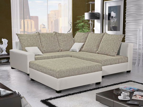 Kutna garnitura Monarda (bež + bijela) (s tabureom) (D)