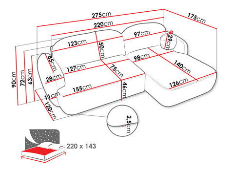 PrikazKutna garnitura je idealan izbor za one koji traže udobnost i stil. Prihvatite naš poziv u svijet lijepih interijera. Udobno se smjestite i opustite na stilskoj kutnoj garnituri Morezi. Namještaj dizajniran da pruži udobnost vama i vašim najmilijima odiše toplinom doma. Čar ovog jedinstvenog modela leži u njegovom modernom zaobljenom obliku. Originalan izgled osigurava i presvlaka od tkanine Boucle loop. Puhasti materijal obavija osobu koja se odmara na sjedalu, povećavajući udobnost korištenja. Kutna garnitura Morezi u obliku slova L presvučena je tkaninom i sa stražnje strane. Zahvaljujući tome izgleda lijepo i uz zid i u samom središtu dnevnog boravka. Robusnu siluetu garniture s funkcijom spavanja naglašavaju elegantne boje. Svijetla nijansa odlična je podloga za mnoge aranžmane. Neutralna boja fleksibilno se prilagođava čestim promjenama dekora. Namještaj je oku ugodan u društvu decentnih i uzorkovanih dodataka. Ukrašena primjerice dekicom nehajno prebačenom preko naslona, pozivat će vas da sjednete i uživate u trenutku odmora s telefonom ili omiljenom knjigom u ruci. Moderan komad namještaja nenadmašan je i u pogledu funkcionalnosti. Spomenuta mogućnost razvlačenja u ležaj dopunjena je prostorom za pohranu. Ovaj prostrani pretinac omogućuje diskretno spremanje jastuka i popluna. Ima dovoljno mjesta i za rezervne deke za hladne jesenske večeri. Kutna garnitura isporučuje se s dekorativnim jastukom u obliku kugle. Ovaj modni detalj potvrđuje dobar dizajn namještaja, ukrašava ga i naglašava izgled inspiriran Japandi stilom. Dimenzije: duljina: 275 cm, širina: 175 cm, visina: 90 cm, površina za spavanje: 220 x 143 cm, dimenzije spremnika: duljina: 120 cm, širina: 60 cm, visina: 25 cm. Kutna strana: lijeva ili desna. Izvedba: okvir: borovo drvo + bukovo drvo + iverica + HDF ploča. Sjedalo: pjena T30 debljine 12 cm + valovita opruga. Naslon: pjena T30 debljine 12 cm. Kutna garnitura je na razvlačenje. Automatski DL mehanizam razvlačenja. Funkcija spavanja. Prostor za pohranu. Crne plastične noge. Naslon u obliku pomičnih jastuka. Jastuci s patentnim zatvaračem, punjeni silikonom. Jastuci uključeni u cijenu. Samostojeća kutna garnitura (stražnji dio presvučen tkaninom). Jamstvo: 24 mjeseca.