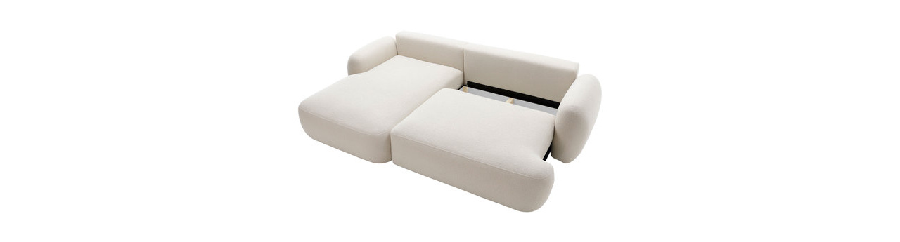 Kutna garnitura je idealan izbor za one koji traže udobnost i stil. Prihvatite naš poziv u svijet lijepih interijera. Udobno se smjestite i opustite na stilskoj kutnoj garnituri Morezi. Namještaj dizajniran da pruži udobnost vama i vašim najmilijima odiše toplinom doma. Čar ovog jedinstvenog modela leži u njegovom modernom zaobljenom obliku. Originalan izgled osigurava i presvlaka od tkanine Boucle loop. Puhasti materijal obavija osobu koja se odmara na sjedalu, povećavajući udobnost korištenja. Kutna garnitura Morezi u obliku slova L presvučena je tkaninom i sa stražnje strane. Zahvaljujući tome izgleda lijepo i uz zid i u samom središtu dnevnog boravka. Robusnu siluetu garniture s funkcijom spavanja naglašavaju elegantne boje. Svijetla nijansa odlična je podloga za mnoge aranžmane. Neutralna boja fleksibilno se prilagođava čestim promjenama dekora. Namještaj je oku ugodan u društvu decentnih i uzorkovanih dodataka. Ukrašena primjerice dekicom nehajno prebačenom preko naslona, pozivat će vas da sjednete i uživate u trenutku odmora s telefonom ili omiljenom knjigom u ruci. Moderan komad namještaja nenadmašan je i u pogledu funkcionalnosti. Spomenuta mogućnost razvlačenja u ležaj dopunjena je prostorom za pohranu. Ovaj prostrani pretinac omogućuje diskretno spremanje jastuka i popluna. Ima dovoljno mjesta i za rezervne deke za hladne jesenske večeri. Kutna garnitura isporučuje se s dekorativnim jastukom u obliku kugle. Ovaj modni detalj potvrđuje dobar dizajn namještaja, ukrašava ga i naglašava izgled inspiriran Japandi stilom. Dimenzije: duljina: 275 cm, širina: 175 cm, visina: 90 cm, površina za spavanje: 220 x 143 cm, dimenzije spremnika: duljina: 120 cm, širina: 60 cm, visina: 25 cm. Kutna strana: lijeva ili desna. Izvedba: okvir: borovo drvo + bukovo drvo + iverica + HDF ploča. Sjedalo: pjena T30 debljine 12 cm + valovita opruga. Naslon: pjena T30 debljine 12 cm. Kutna garnitura je na razvlačenje. Automatski DL mehanizam razvlačenja. Funkcija spavanja. Prostor za pohranu. Crne plastične noge. Naslon u obliku pomičnih jastuka. Jastuci s patentnim zatvaračem, punjeni silikonom. Jastuci uključeni u cijenu. Samostojeća kutna garnitura (stražnji dio presvučen tkaninom). Jamstvo: 24 mjeseca.