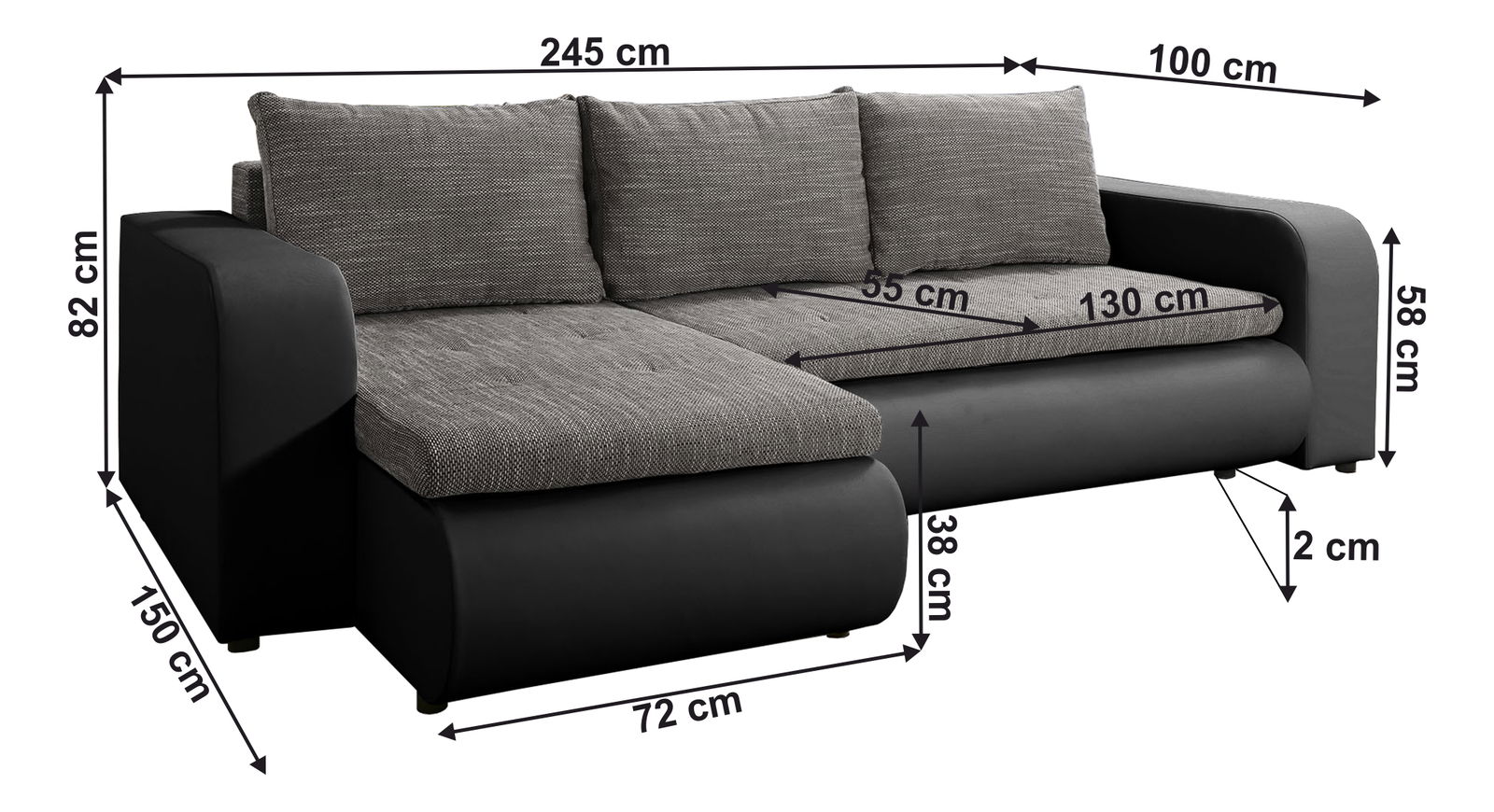 Kutna garnitura na razvlačenje Bistran (crna + siva) (L)