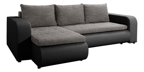 Na plastičnim nogama, isporučuje se s tri jastuka, na razvlačenje, kutna, potpuno tapecirana, s prostorom za odlaganje, lijevo usmjerenje