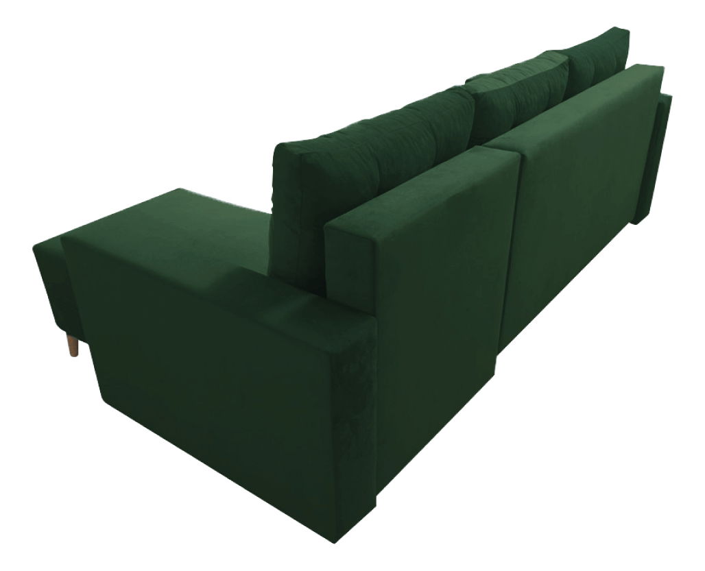 Na drvenim nogama, isporučuje se sa 3 jastuka, na razvlačenje, kutna, potpuno tapecirana, s prostorom za odlaganje, desno usmjerenje