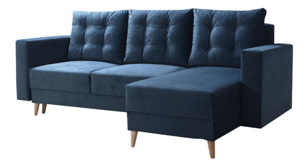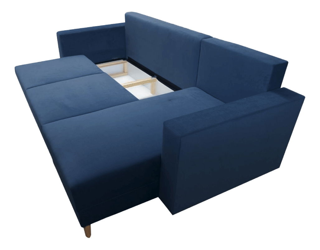 Na drvenim nogama, isporučuje se sa 3 jastuka, na razvlačenje, kutna, potpuno tapecirana, s prostorom za odlaganje, desno usmjerenje