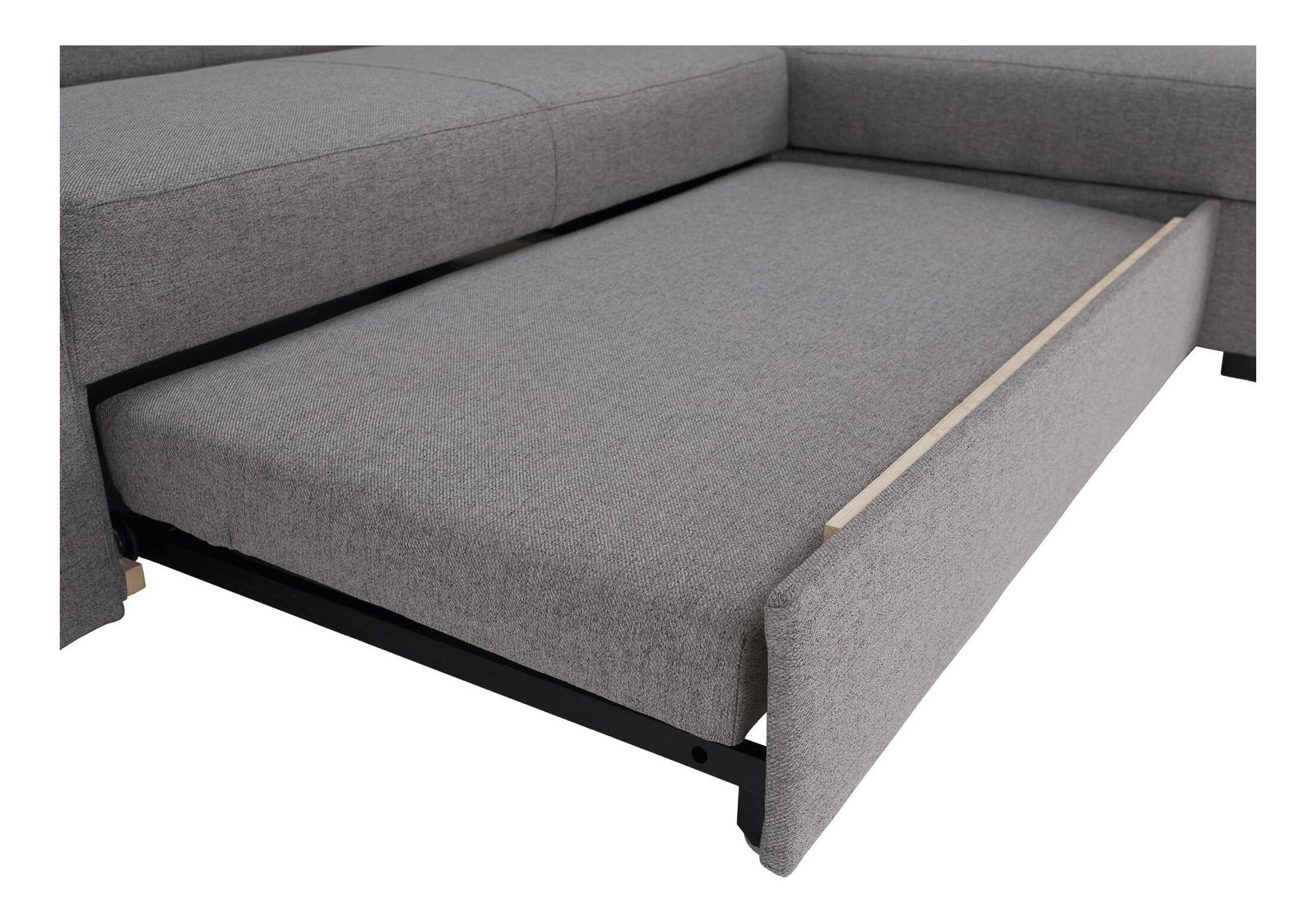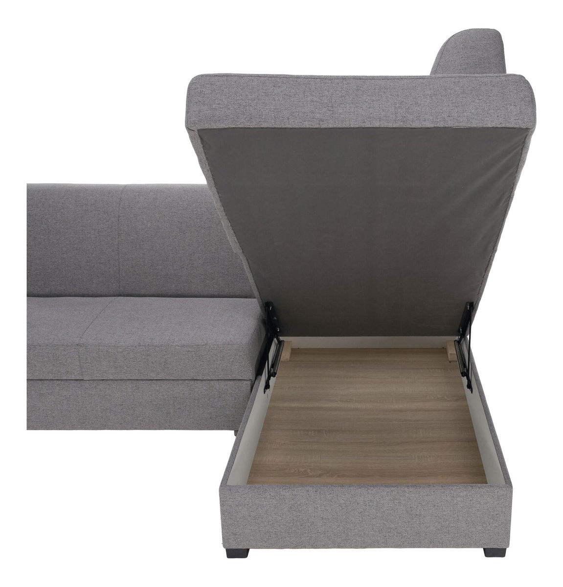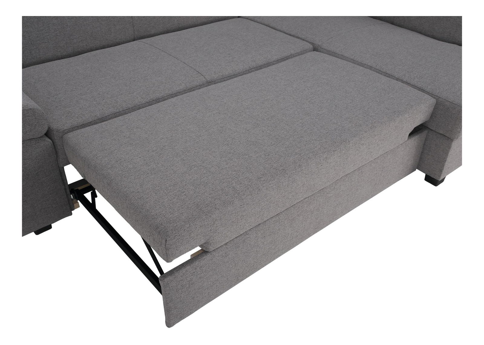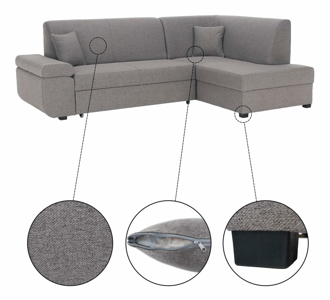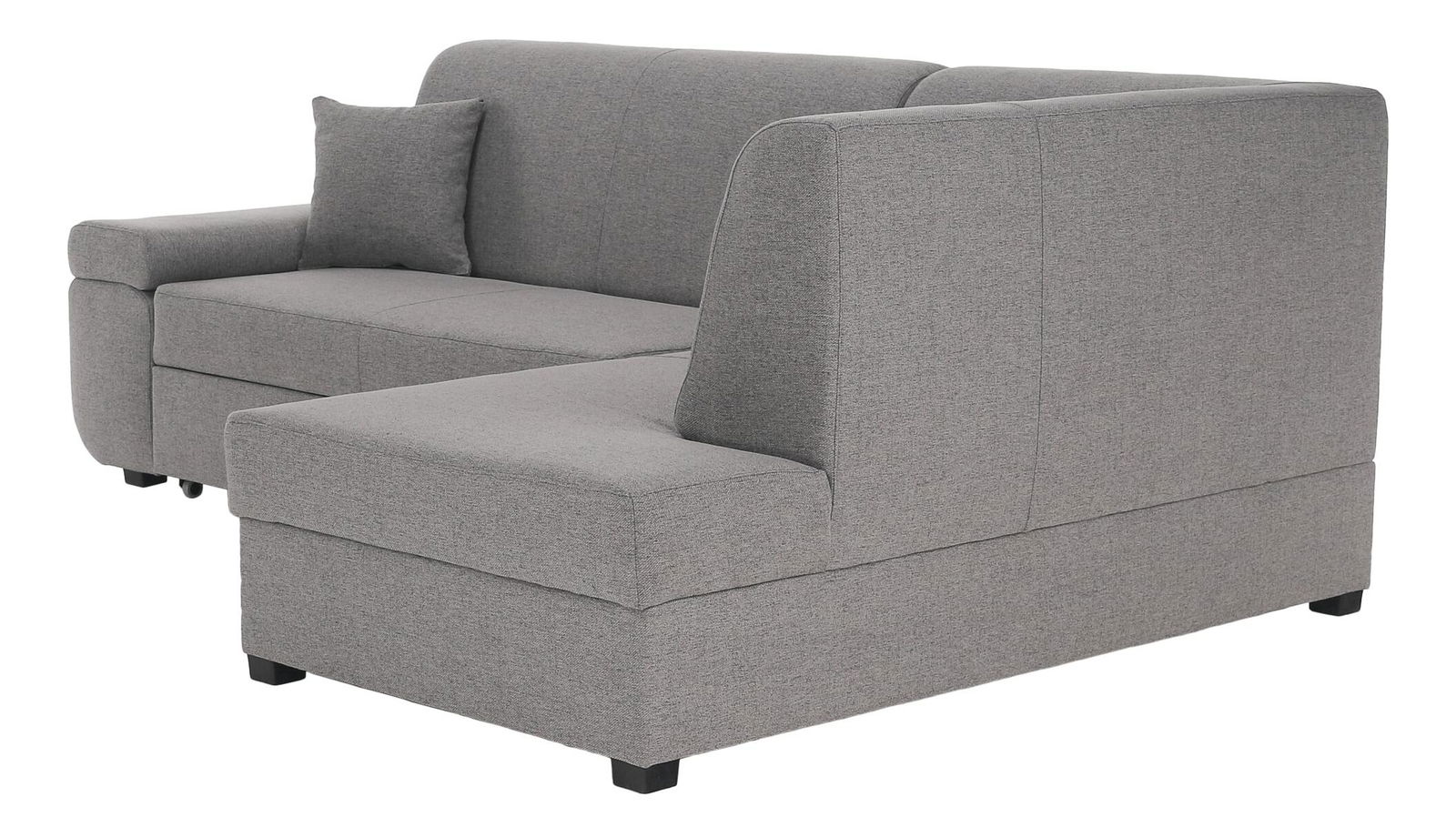 Na razvlačenje, kutna, potpuno tapecirana, 2 ukrasna jastuka, desna verzija, plastične noge, s prostorom za odlaganje