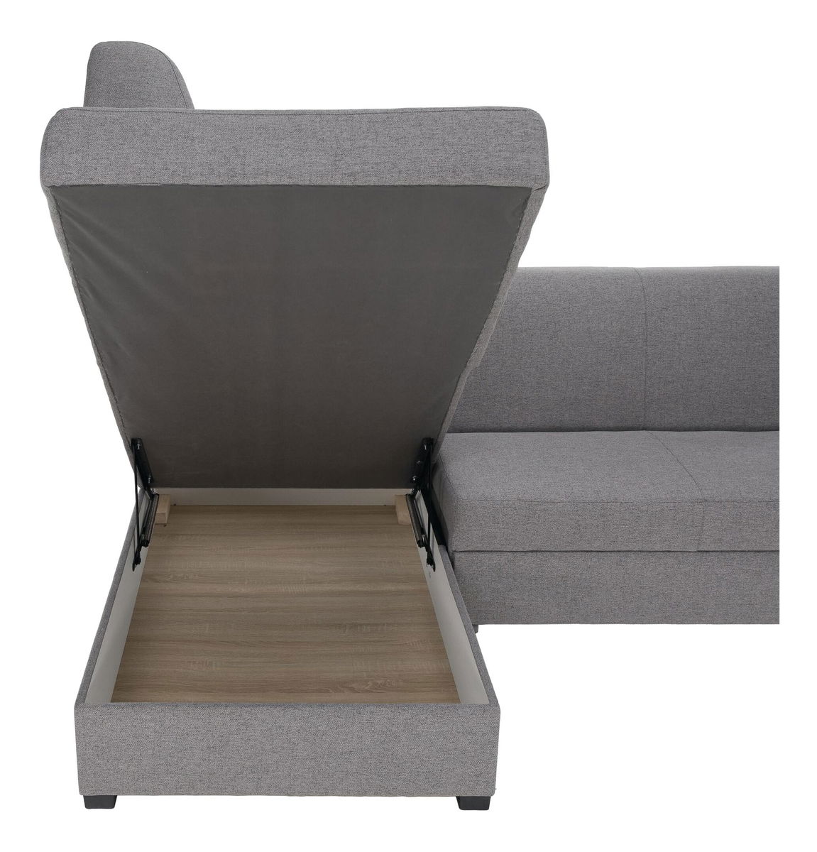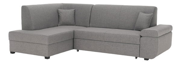 Na razvlačenje, kutna, potpuno tapecirana, 2 ukrasna jastuka, lijevi dizajn, plastične noge, s prostorom za odlaganje